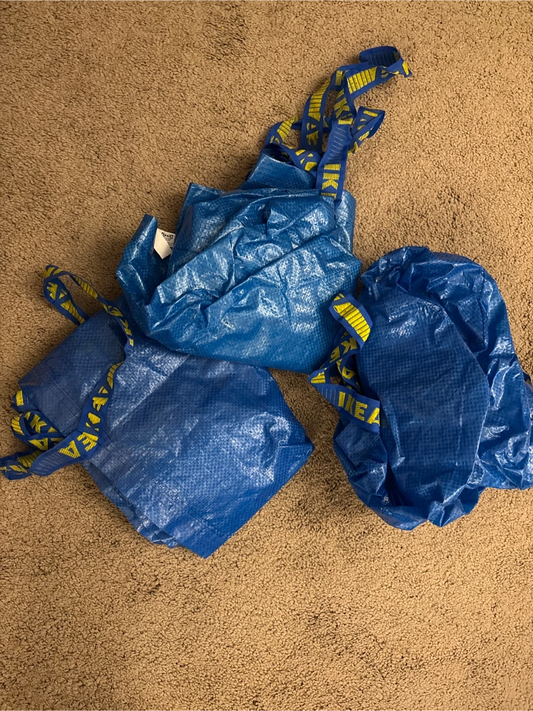 Selling a set of three IKEA FRAKTA blue shopping bags! These are super handy for groceries, laundry, or just general storage. They're durable and easy to clean, perfect for all your carrying needs