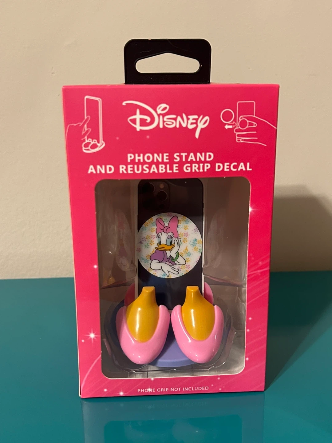 Brand new in box Daisy Duck phone stand with reusable grip decal.