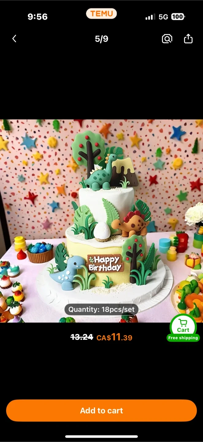 This is a cute dinosaur themed cake topper set. Decorate your cake for a birthday party!