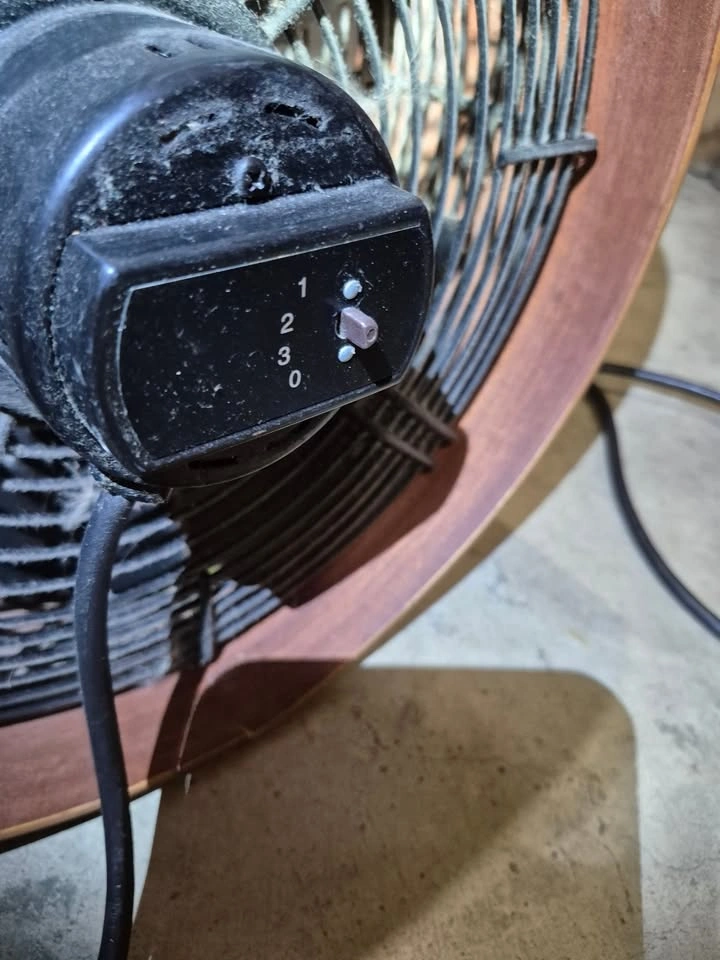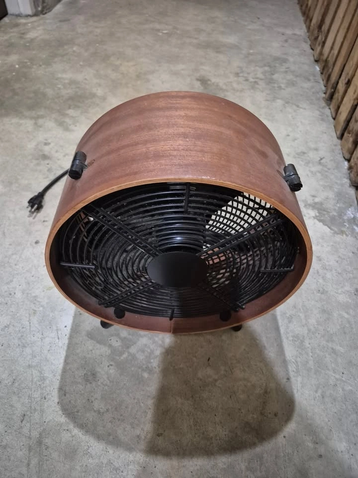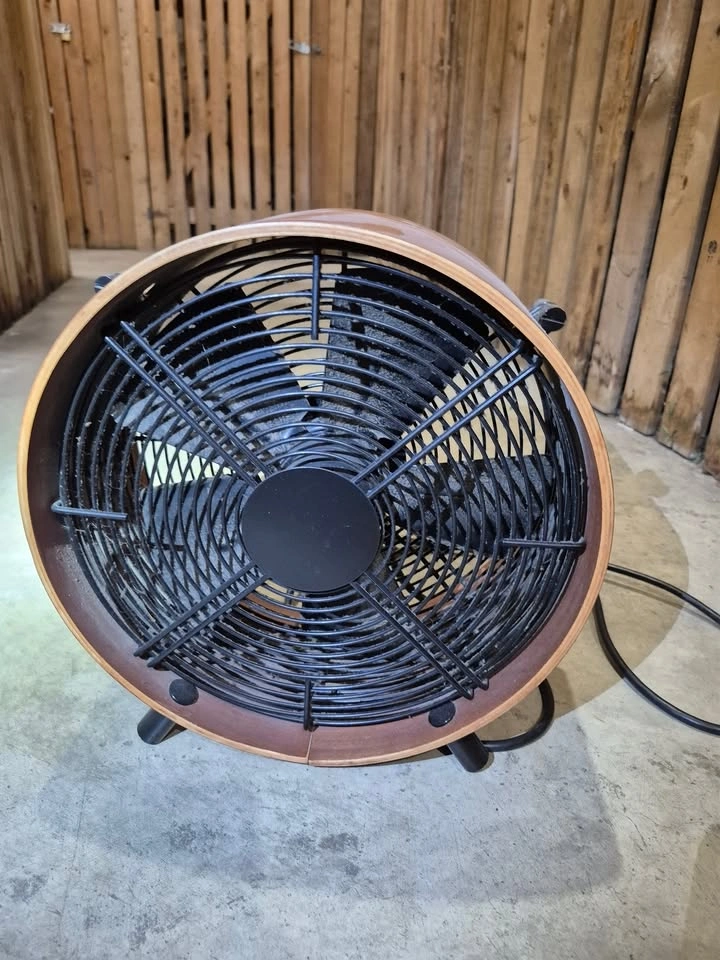 80Add retro charm to any room with this stylish mid-century modern round fan! Featuring an attractive laminate wood exterior with black interior accents, this fan brings vintage aesthetic and nostalgic appeal to your space while still delivering functional air circulation. The fan offers three speed settings to customize your cooling comfort. Please note: the adjustable knob has been lost, but the fan operates perfectly with a standard replacement knob (readily available and inexpensive to source), making this a great value for anyone looking to add mid-century flair to your home or office. Specifications: - Style: Mid-century modern - Type: Round fan - Exterior: Laminate wood - Interior: Black - Speed Settings: Three - Condition: Fully functional (adjustable knob replacement needed) - Perfect for: Vintage decor enthusiasts, mid-century modern collectors If you see this post, it's available — don't hesitate to reach out! Cash only, please. No e-transfers. Moving out of the country and selling everything I own — check out my other listings for furniture, electronics, sporting gear, kitchenware, collectibles, and plenty more!