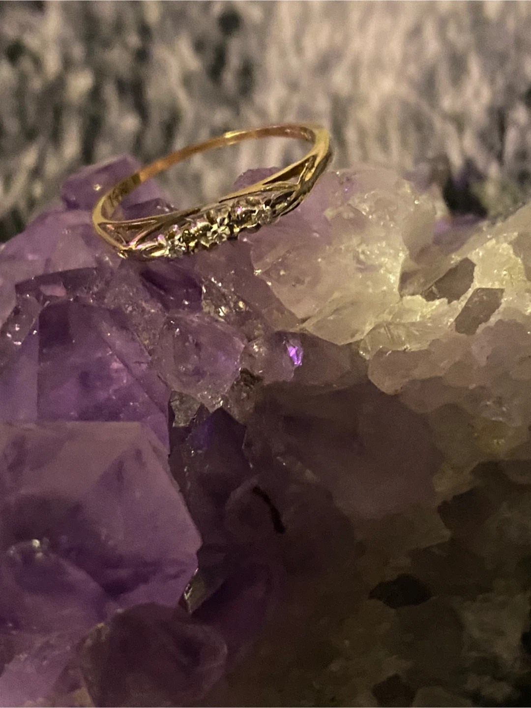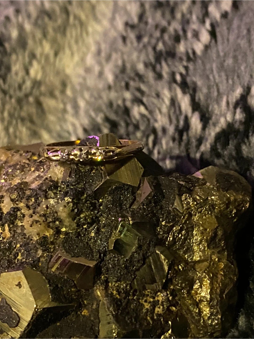 Selling a beautiful 14 karat 1.5 grams size 6 and a half gold ring featuring small diamonds. It's in great condition and would make a lovely addition to anyone's jewelry collection