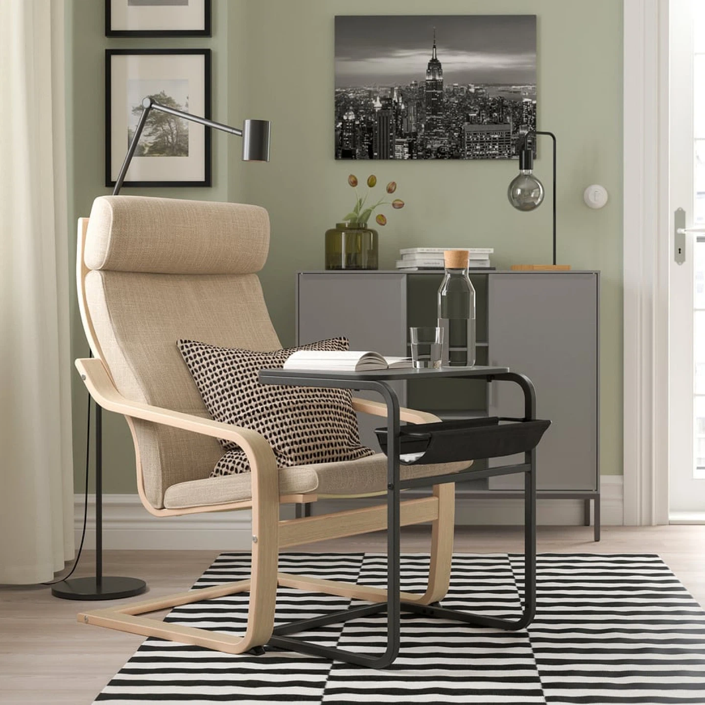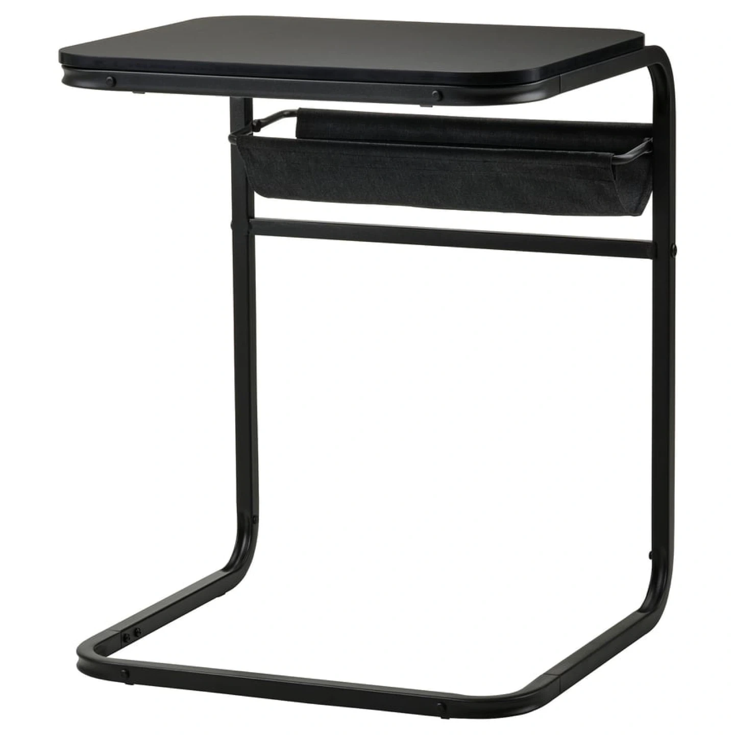 Looking to sell an IKEA Svallsta side table in black. It's in great shape and perfect for small spaces! The table has a handy storage pocket to keep your essentials close by. Dimensions are approximately 53 cm x 40 cm (tabletop) and 63 cm in height