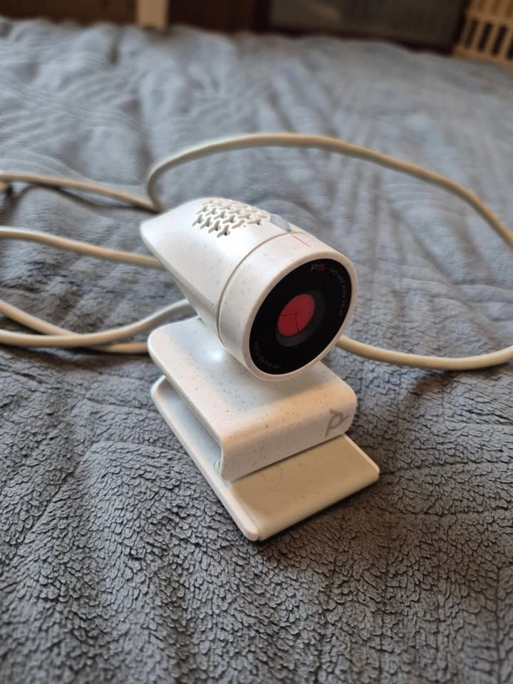 80Plantronics Poly Studio P5 professional webcam in white. This high-quality 1080p HD webcam with built-in microphone is specifically optimized for video conferencing and streaming. Key features: - 1080p HD video quality - Built-in audio/microphone - 80-degree field of view for perfect framing - USB 2.0 cable included - Professional-grade optics - White finish Perfect for: - Video conference calls - Streaming - Distance learning - Remote work - Content creation This is a premium webcam from a trusted brand, ideal for anyone who needs reliable, high-quality video and audio for professional or personal use. If this listing is still up, then the item is available. I do not accept e-transfers, only cash in hand.