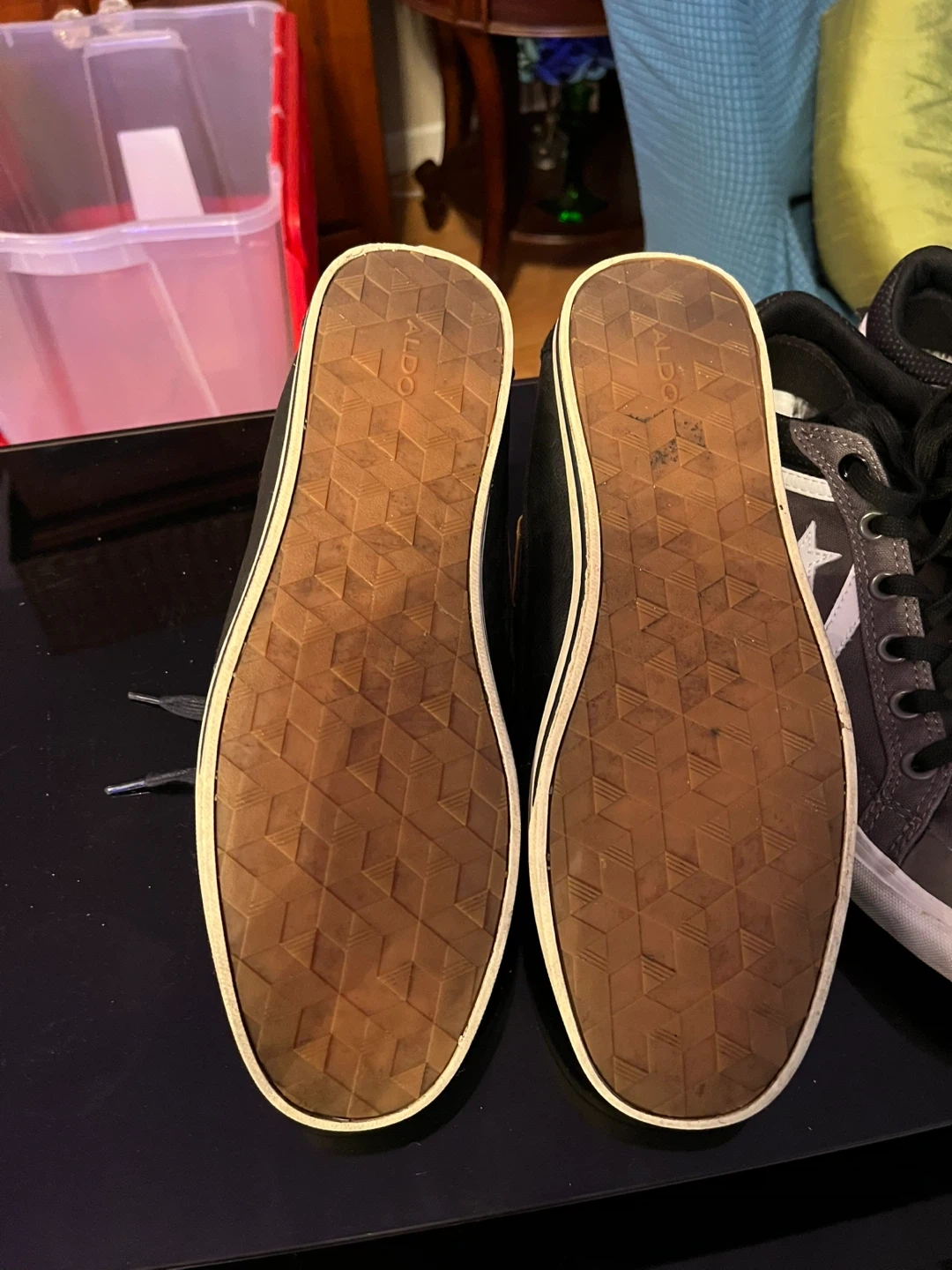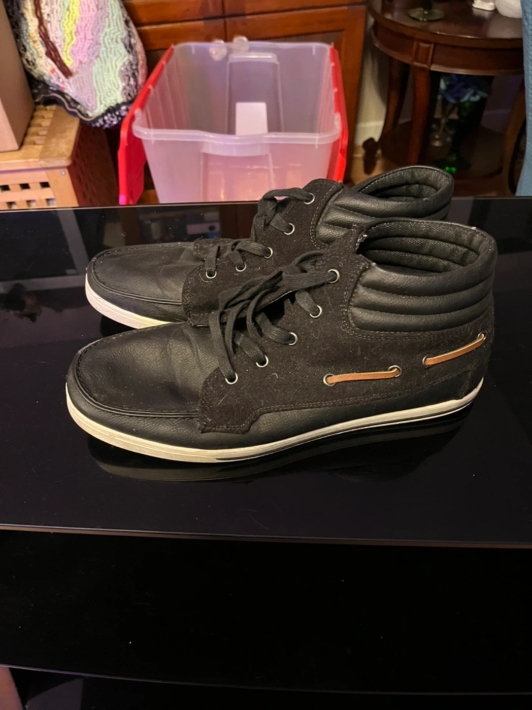 Selling a pair of ALDO men's high-top sneakers in black. They are in good condition and ready for a new home!