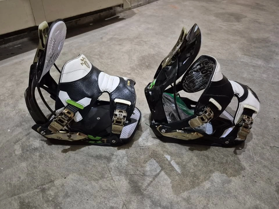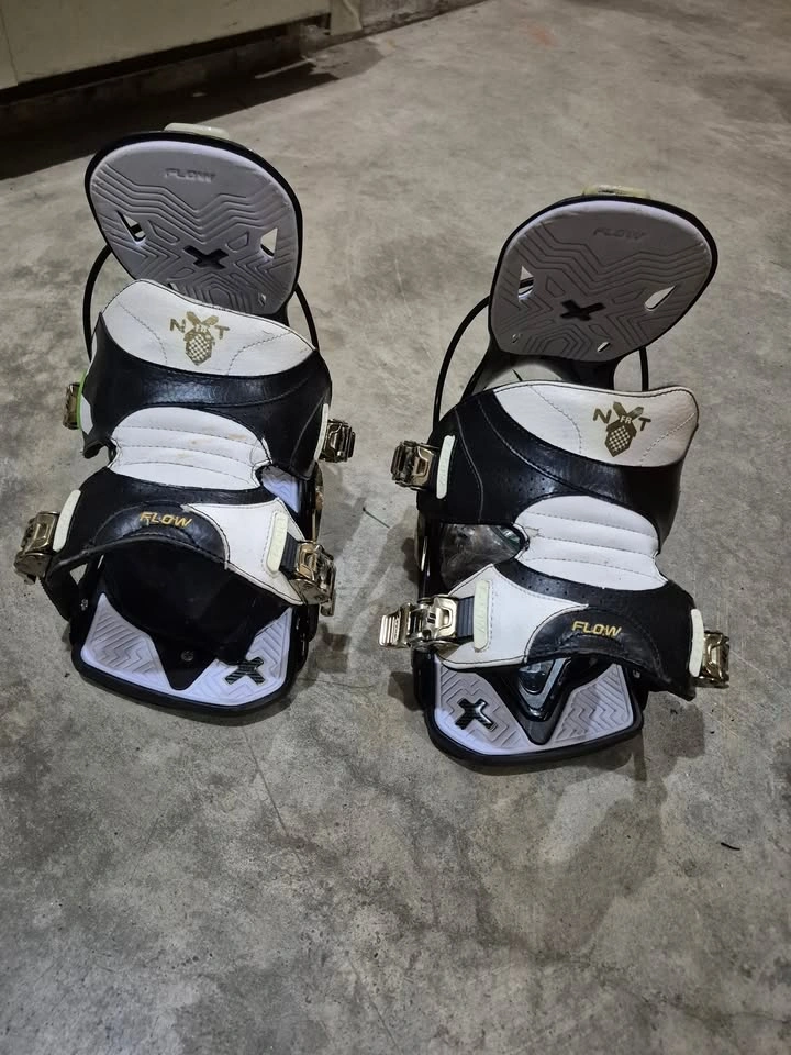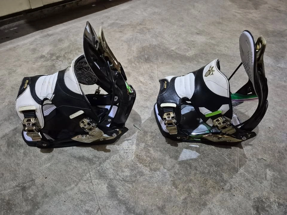 80Experience the speed and convenience of rear entry bindings with these Flow XT freeride snowboard bindings! Flow bindings revolutionized snowboarding with their innovative rear entry design that lets you strap in quickly without bending down. The XT model is specifically engineered for freeride performance, delivering responsive control and reliable support for aggressive all-mountain riding. Simply step in from the back, lock down the highback, and you're ready to ride. The black, white, and gold color scheme with green accents looks sharp on any board. Size medium fits boot sizes ~8-10; confirmed fit for size 9 with room to adjust. Specifications: - Brand: Flow - Model: XT - Type: Rear entry freeride snowboard bindings - Size: Medium (fits boot sizes ~8-10; confirmed fit for size 9 with room to adjust) - Colors: Black, white, and gold with green accents - Entry System: Quick rear entry design - Riding Style: Freeride/all-mountain - Condition: Good working order - Perfect for: Riders who value convenience and performance If you see this post, it's available! Cash only, please. Moving out of the country and selling everything I own — check out my other listings!