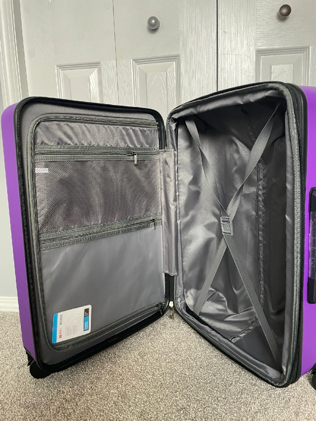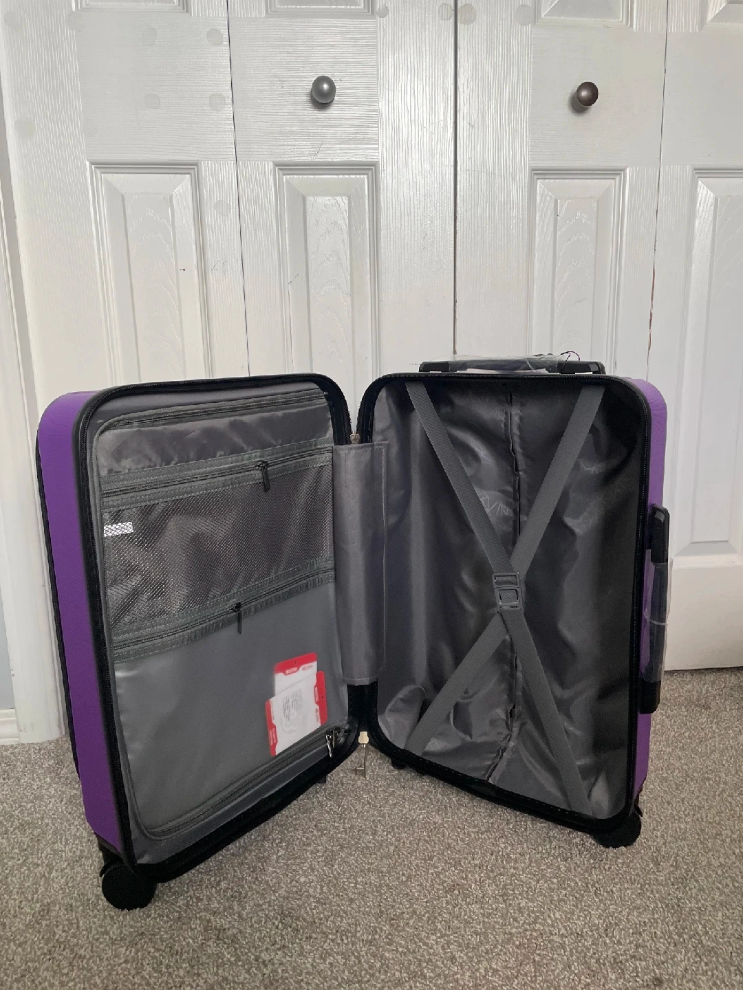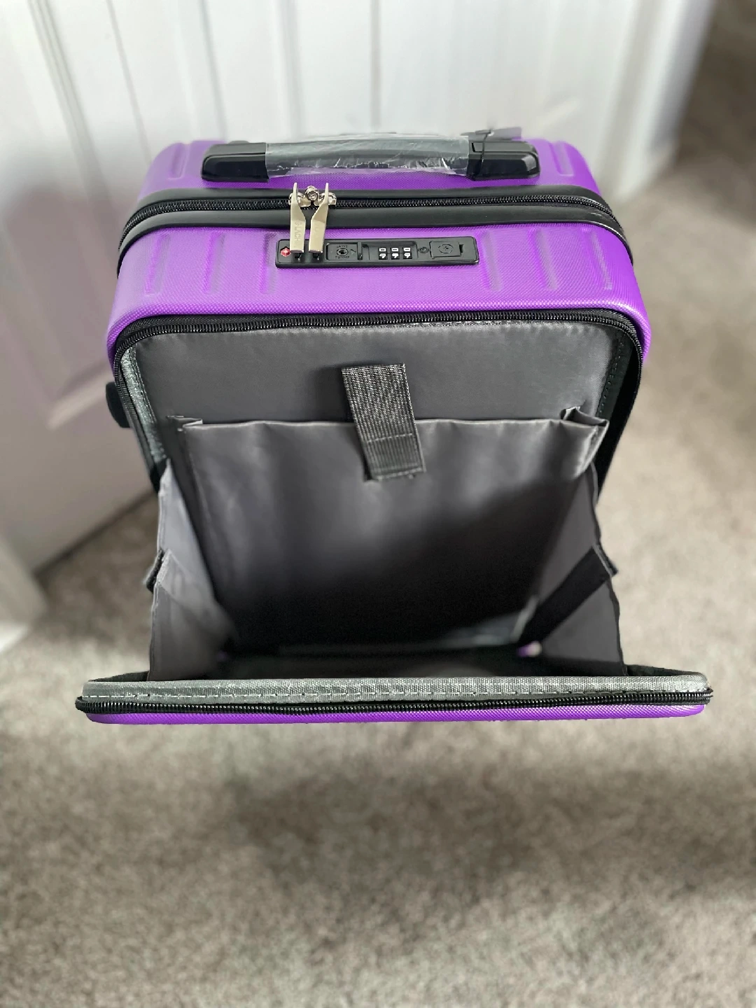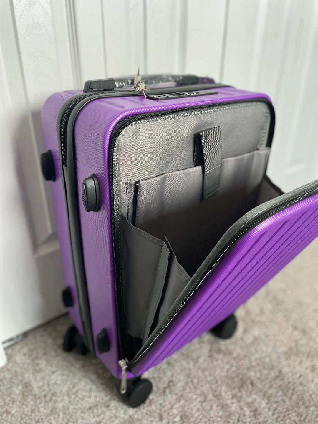 Looking to sell this Lachin carry-on luggage in Purple. It's brand new never opened and ready for your next trip! It has a sleek design and is perfect for fitting everything you need for a short getaway