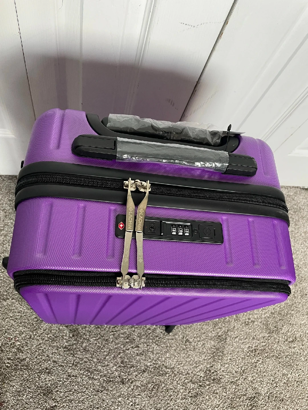 Looking to sell this Lachin carry-on luggage in Purple. It's brand new never opened and ready for your next trip! It has a sleek design and is perfect for fitting everything you need for a short getaway