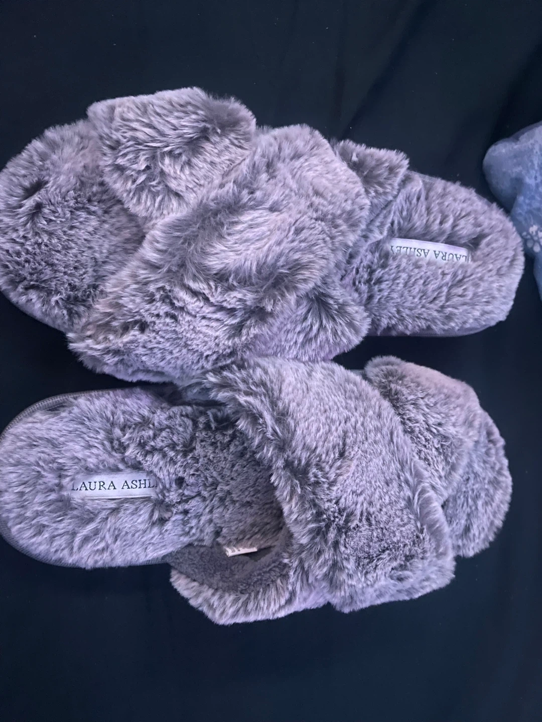 BRAND NEW NEVER WORN Cozy Laura Ashley slippers in a size large (8-9). They're super soft and perfect for wearing around the house! CASH ONLY !