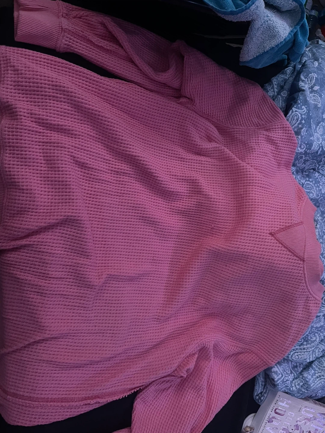 Selling an Aerie waffle knit top in a lovely pink colour! It's a size medium but fits WAY bigger than a medium (fits more like a XL) and in great condition. Perfect for lounging or layering! CASH ONLY !