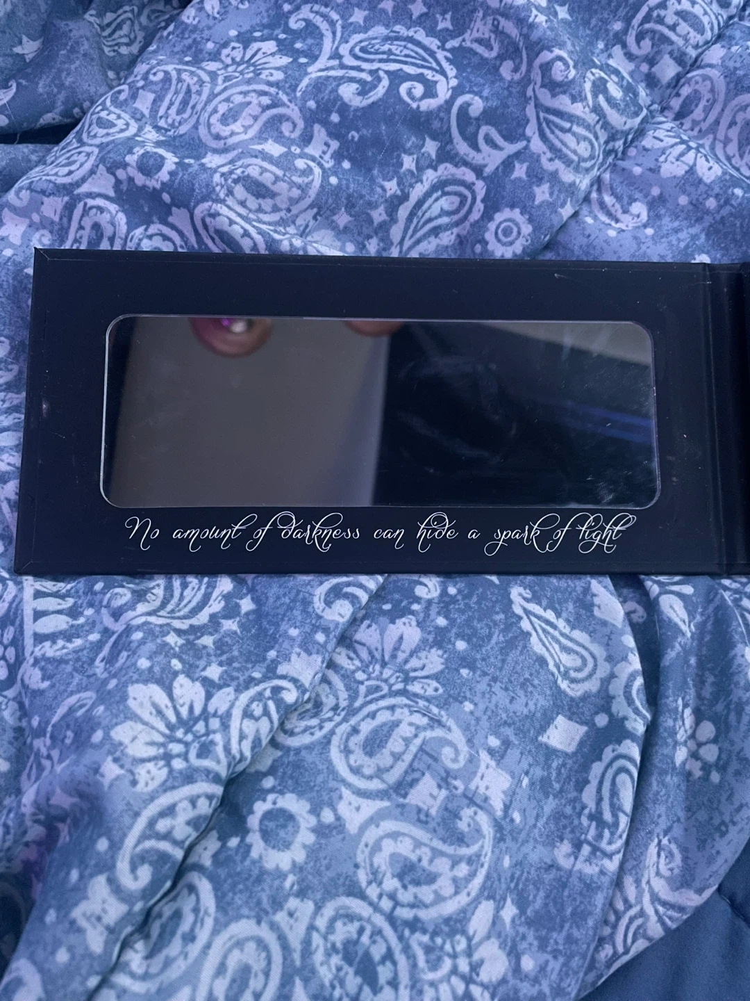 Selling a LASplash Lumos highlighter palette! The palette includes the shades Jinx, Lumos, Illuminate, and Hex. The palette also has a mirror and the words 'No amount of darkness can hide a spark of light' printed on the inside (used once) CASH ONLY !