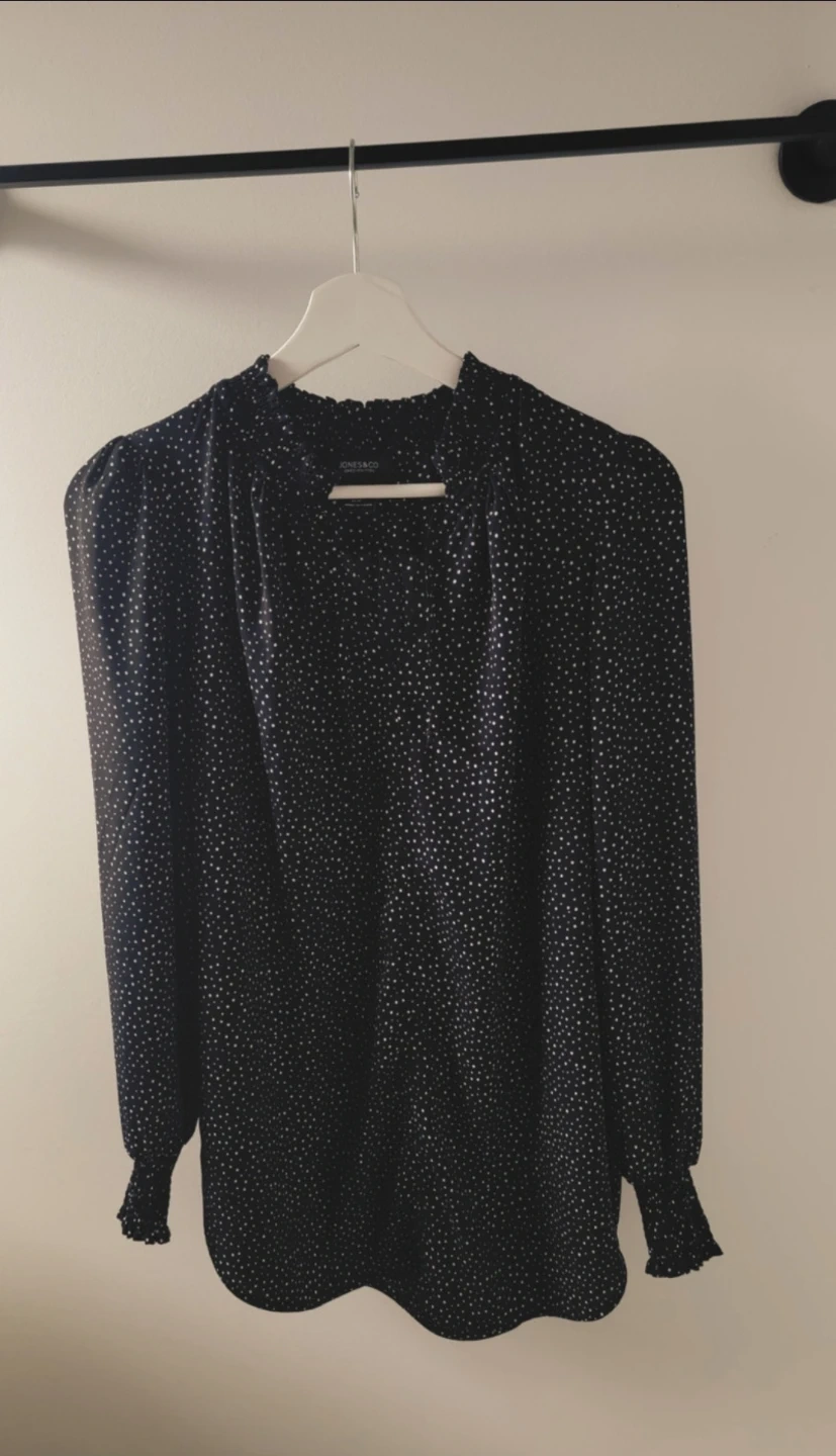 Jones & Co blouse with a cute polka dot pattern! It's a size M and in great condition. Perfect for adding a touch of style to your wardrobe!
