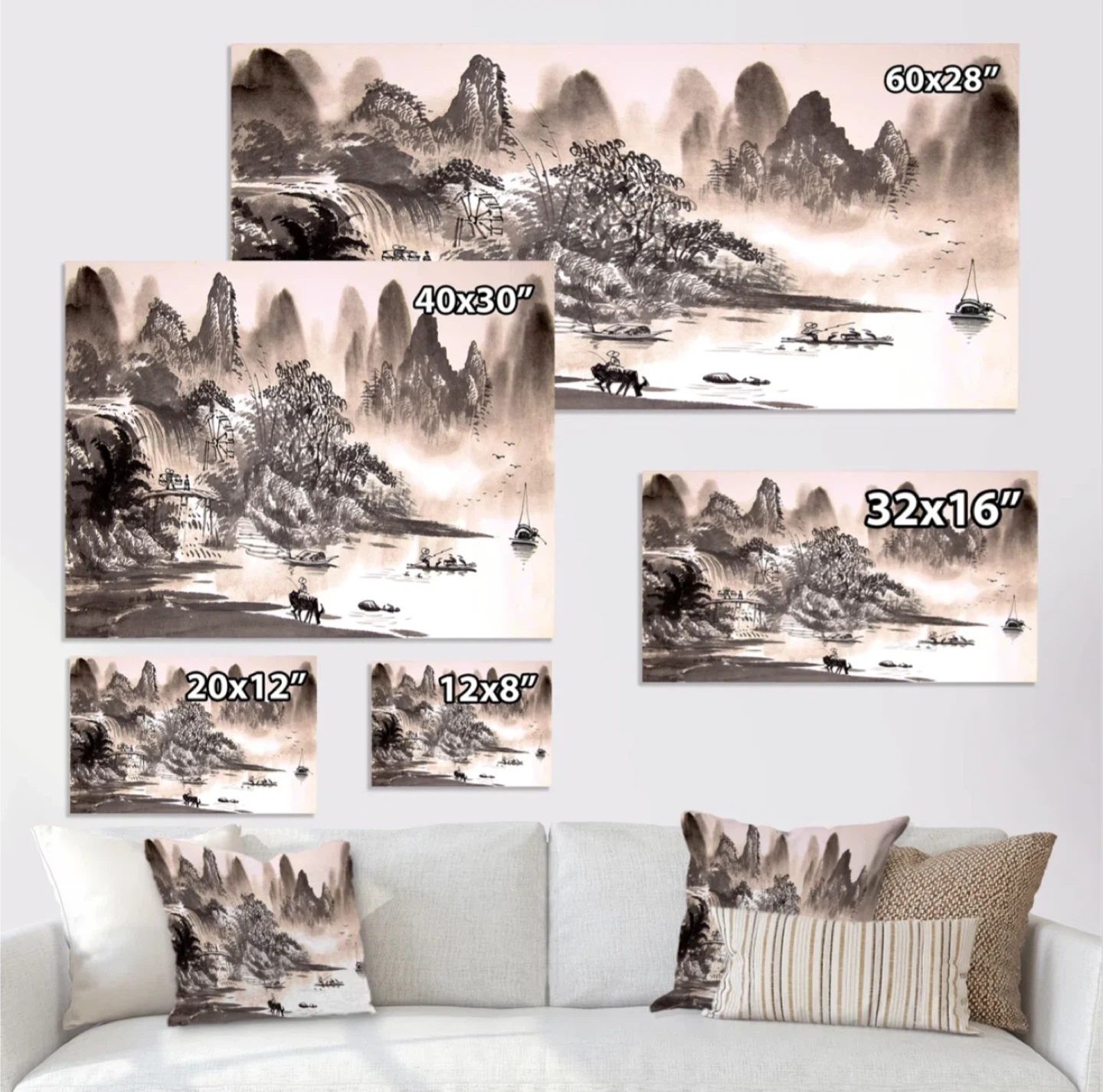 Wayfair 60”x28” Canvas landscape chinese Ink Painting ($250 new)