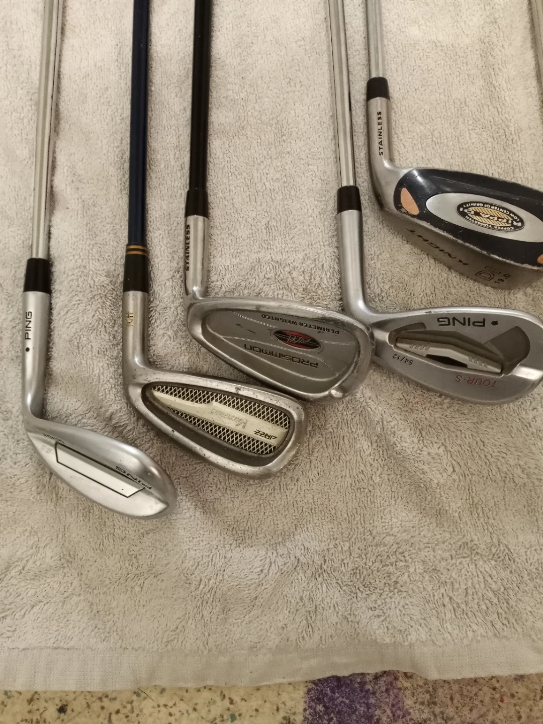 Selling a mixed set of golf clubs. There are several brands including Ping, Cleveland and King. Great for someone looking to get into golf or add to their collection!