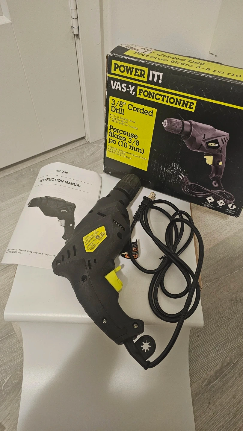 [No chuck/drill bits included] Power It! 3/8" Corded Drill
