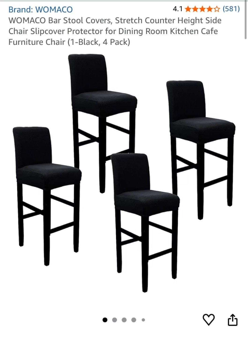 4 WOMACHO Bar Stool Covers - Black, 4 Pack