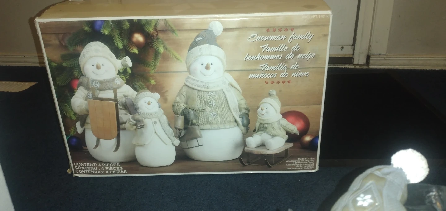 Get ready for the holidays with this adorable snowman family set! The box says it contains 4 pieces, perfect for decorating your home for the winter season