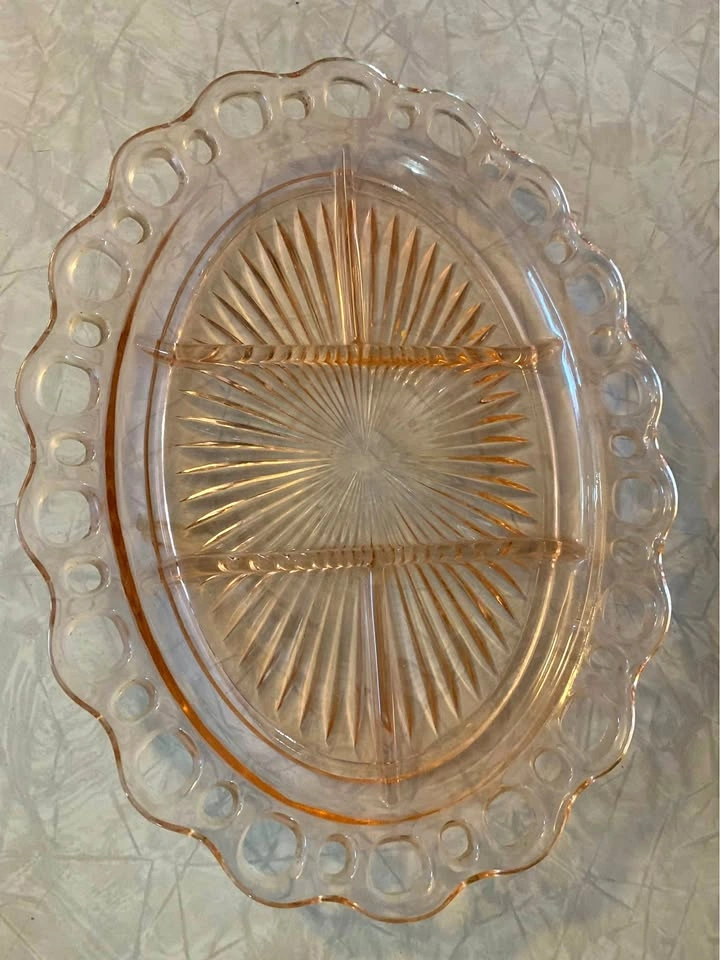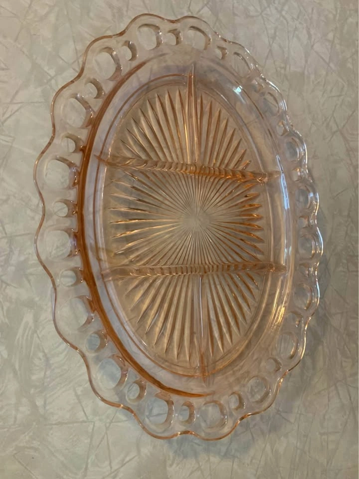 Buy & SellPink depression glass serving trayPink depression glass serving tray$10Excellent condition. Pick up in BridgenorthWHERE TO MEETCheck LocationView MapSELLERCrystalBridgenorth100 reviews0 chats·0 favorites·2 views
