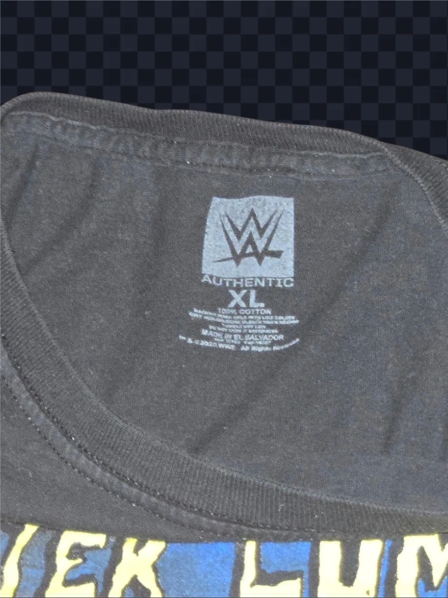 Selling a Dexter Lumis "Tortured Artist" T-shirt. The shirt is black with a colourful graphic print featuring Dexter Lumis in a wrestling ring. The size appears to be around a men's medium, based on the measurements in the photos.