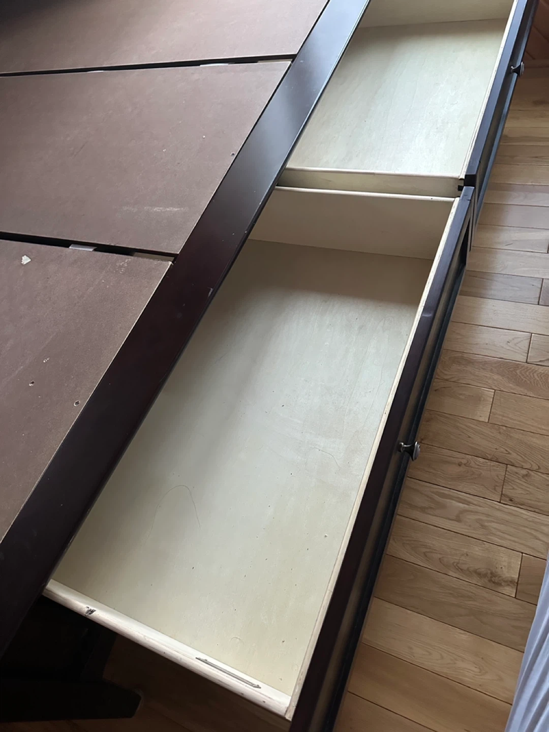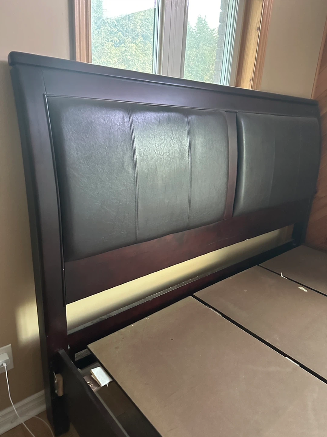 Upgrade your bedroom with this High End Luxury king size solid wood bed made by Aspen Home. Features a luxurious leather headboard and two spacious storage drawers at the foot of the bed.