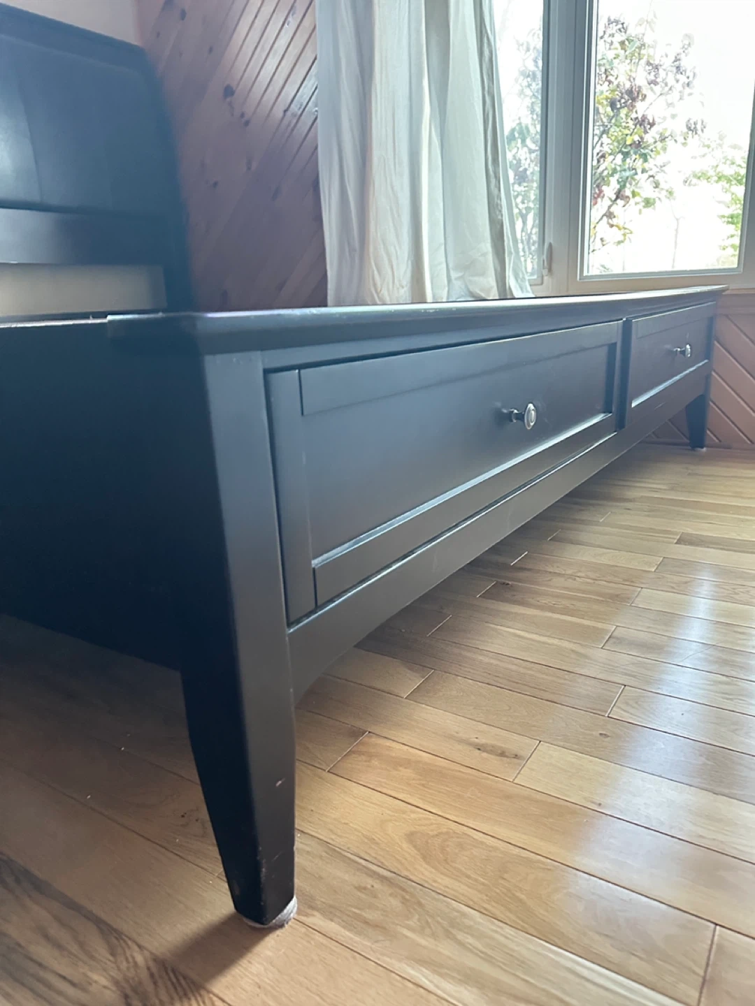 This bed combines luxury and practicality — perfect for anyone looking for a statement piece with built-in storage.