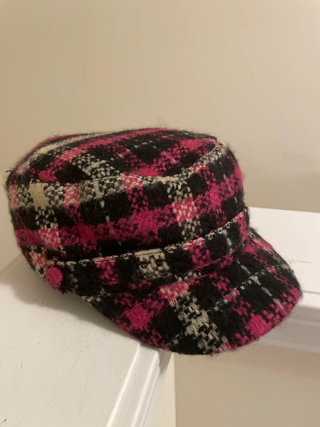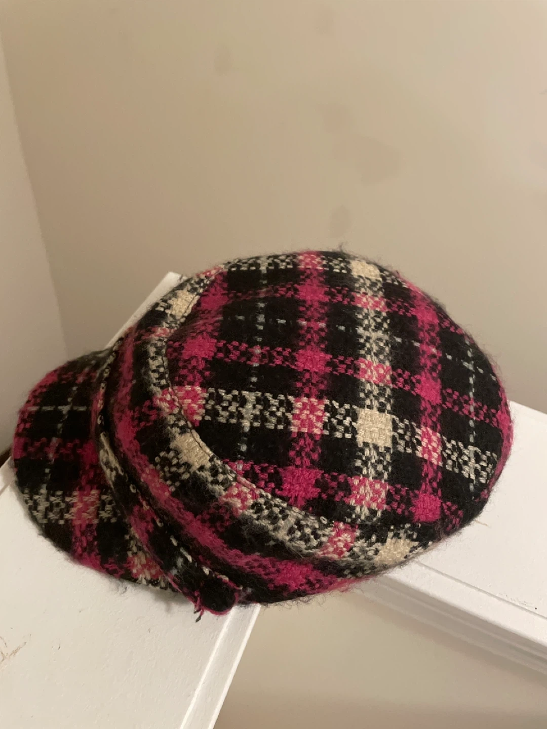 Selling a cute Papillon hat with a stylish plaid pattern! It's in great condition and one size fits most. Perfect for adding a pop of colour to your outfit!