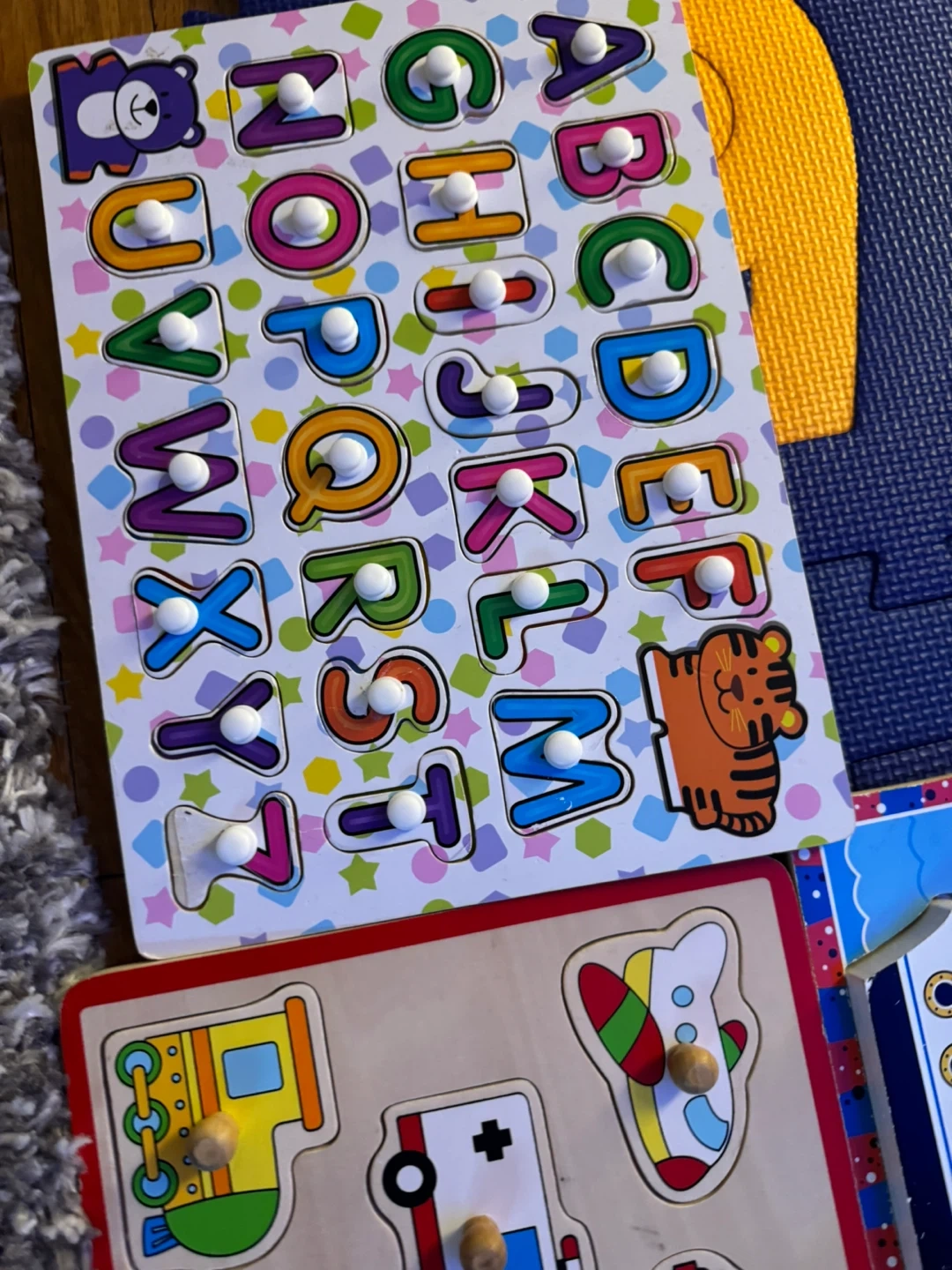 I'm selling all 5 sets of Melissa & Doug wooden puzzles! This set includes an alphabet puzzle, a numbers puzzle, a vehicles puzzle, and a farm animals puzzle. They're in great condition and ready for a new home!