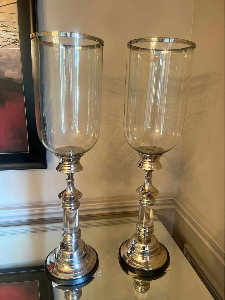 10Beautiful, elegant, very tall candleholders. There is a spot in each one for a taper candle. Each one is $45.