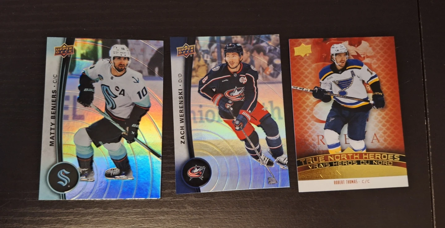 Buy & SellUpper Deck Hockey Cards - Beniers, Werenski, Thomas🥕Upper Deck Hockey Cards - Beniers, Werenski, Thomas🥕FreeSelling a set of Upper Deck hockey cards featuring Matty Beniers, Zach Werenski, and Robert Thomas. Great for any hockey card collector!ConditionNewWHERE TO MEETM6M 2N1View MapSELLERverifiedAliciaAmesbury64962 reviews2 chats·1 favorites·28 viewsSEND CHAT TO SELLERHi Alicia! I’m interested in your listing.Hi Alicia! I’m interested in your listing.Get the Karrot app to chatSign In to chat