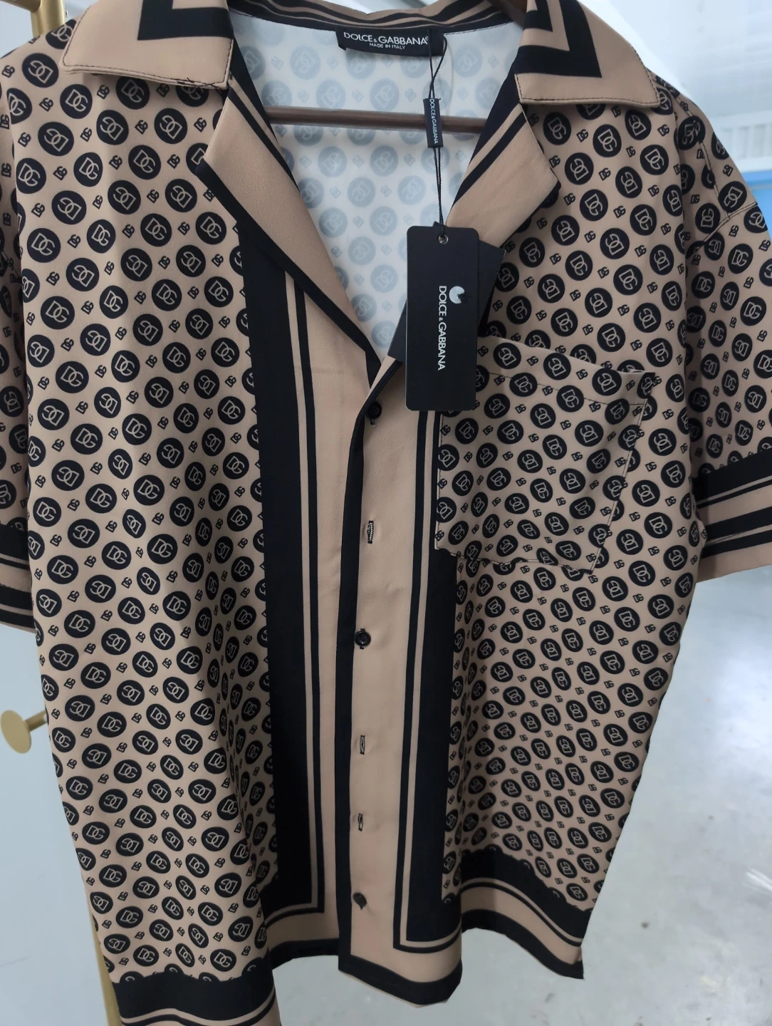 Here's a stylish Dolce & Gabbana short sleeve shirt with a unique pattern. It's in great condition and ready for a new home! Perfect for adding a touch of luxury to your wardrobe.