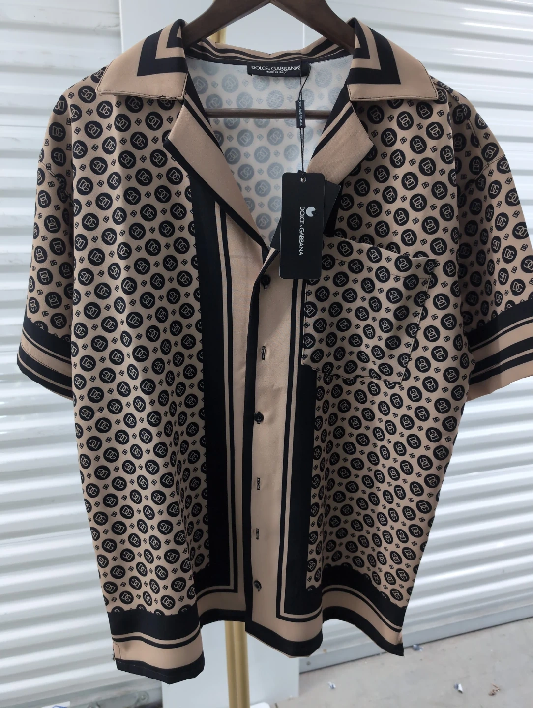 Here's a stylish Dolce & Gabbana short sleeve shirt with a unique pattern. It's in great condition and ready for a new home! Perfect for adding a touch of luxury to your wardrobe.