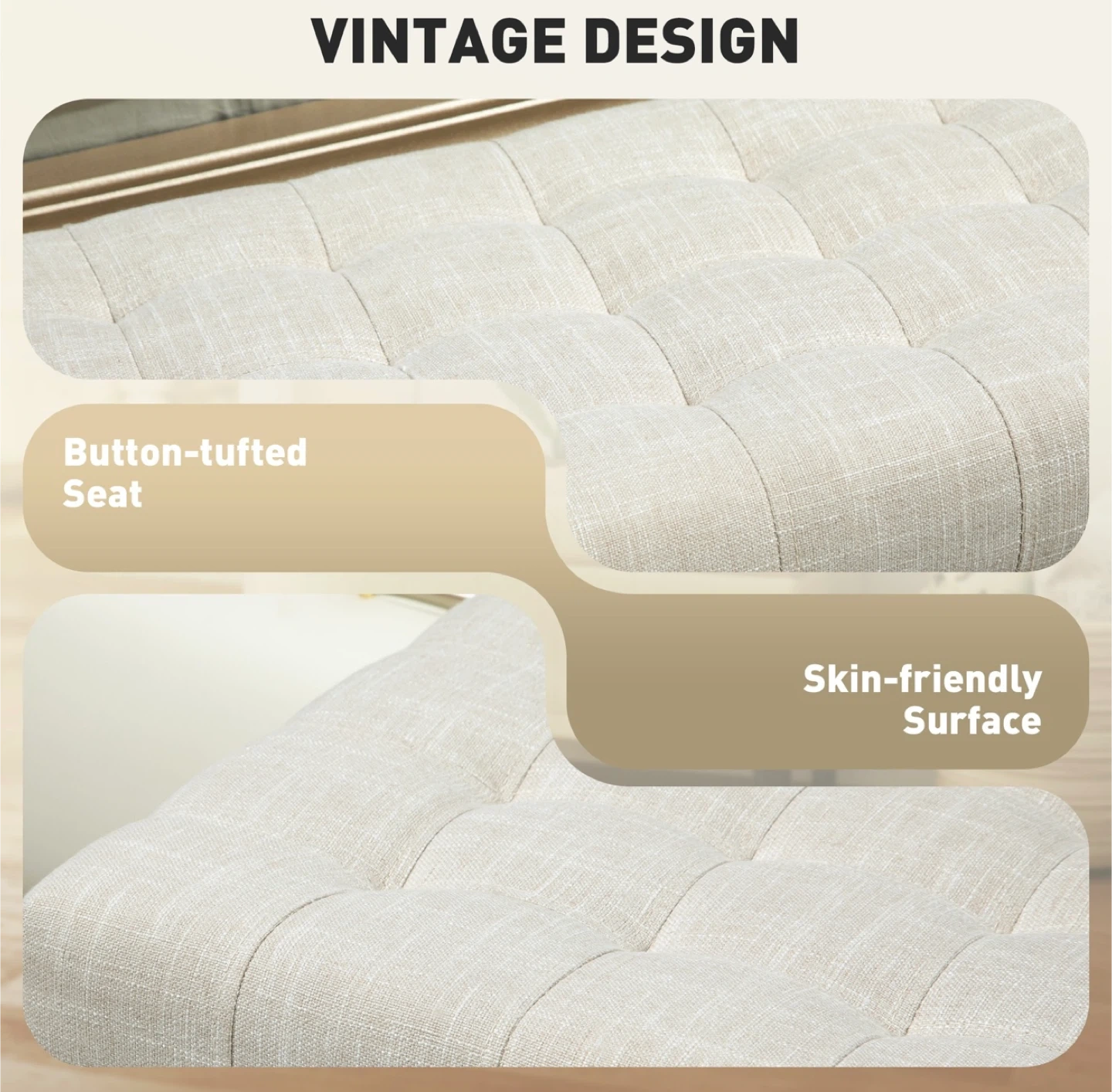 * Button-tufted seat