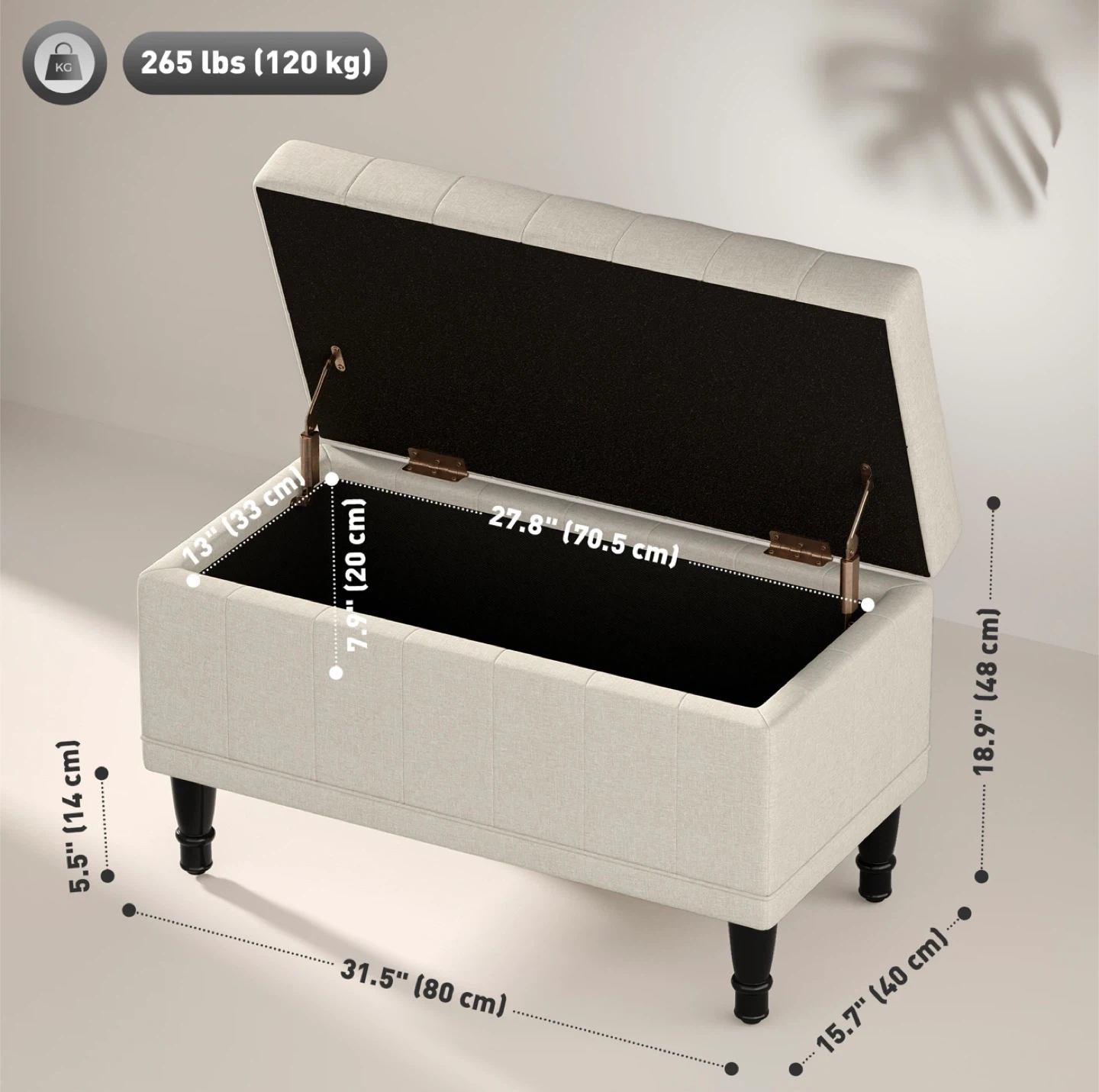 * Dimensions: 31.5" (L) x 15.7" (W) x 18.9" (H)