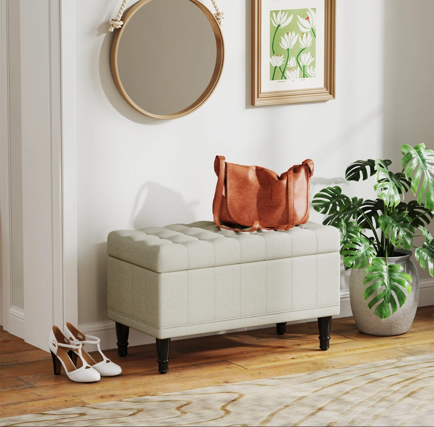 This brand-new HOMCOM storage ottoman is the perfect blend of style and functionality for any living space. Featuring a button-tufted seat and sturdy rubberwood legs, it offers ample storage space while adding a touch of vintage charm to your home decor.