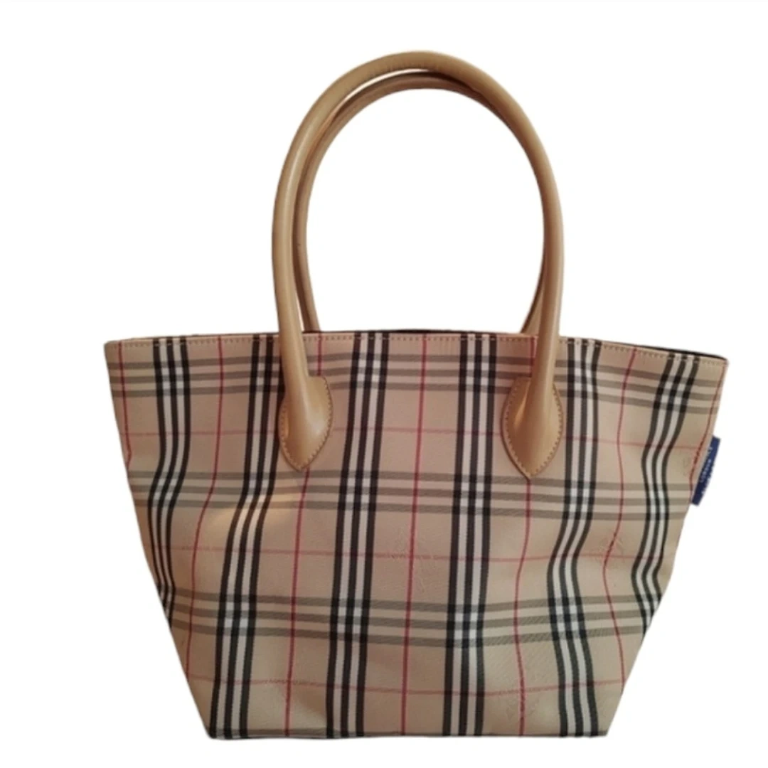 Burberry London Blue Label Check Nylon & Leather Tote Bag.