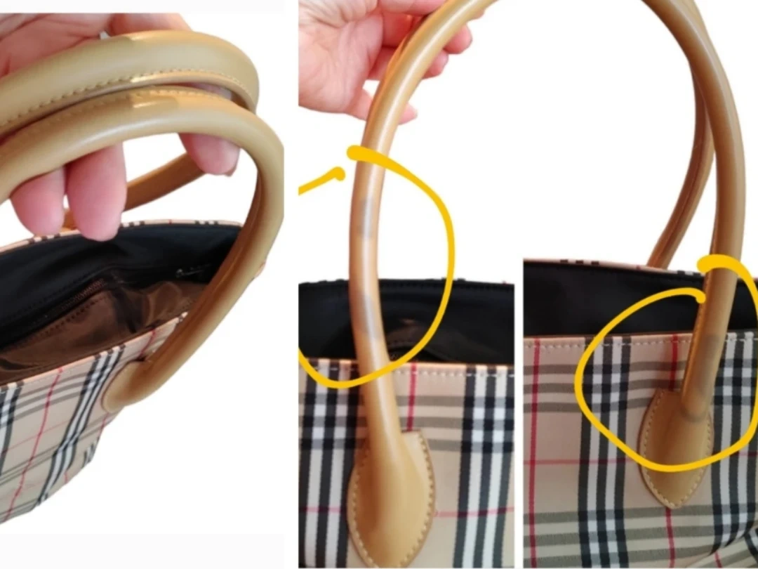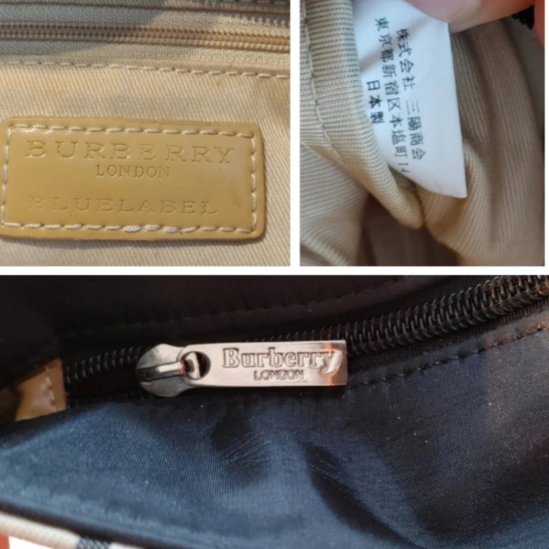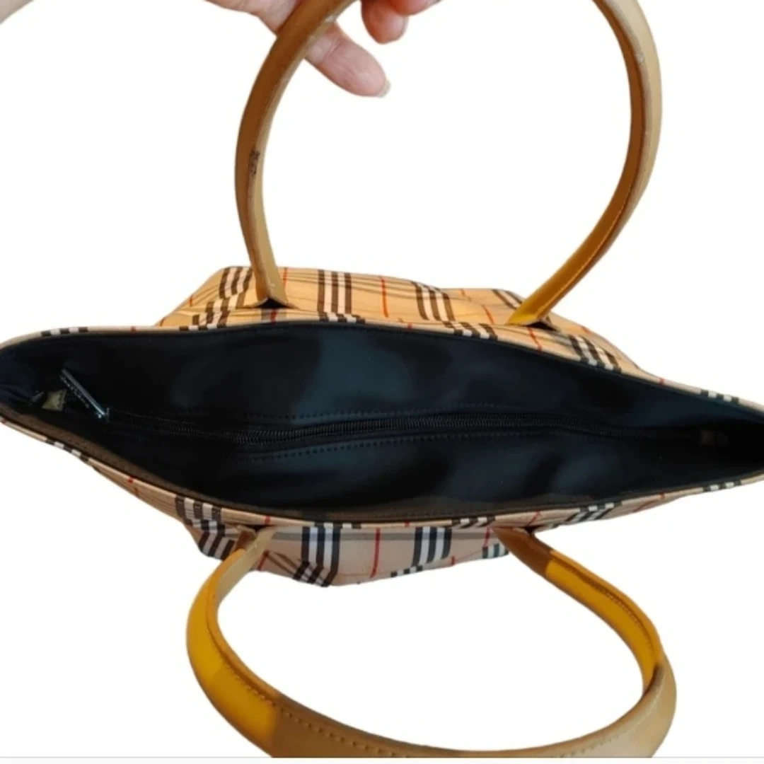 Features: Zip top closure. Silver hardware. Double leather handles. Lined interior with a zip wall pocket & small slip pocket. Nova Check Nylon Print. Burberry Logo subtly stitched on Nylon Check Print. Genuine Leather straps.