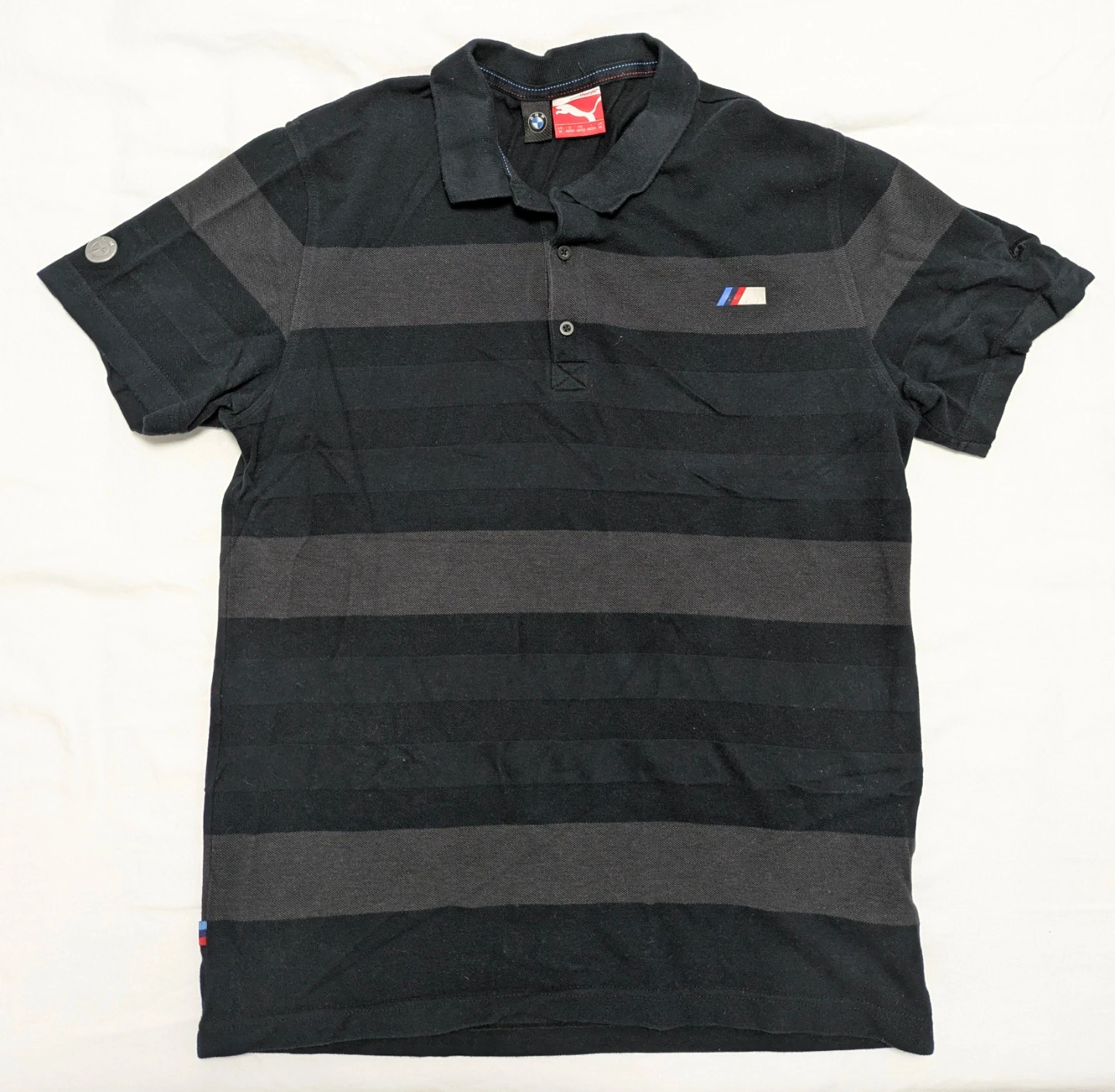 Selling a Puma polo shirt with a striped design, featuring the BMW logo. Never worn. Medium.