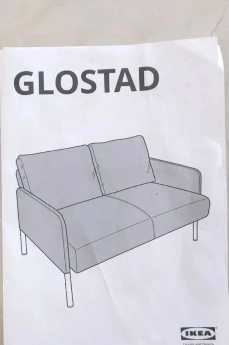 GLOSTAD sofa has a simple design which is also comfortable with its thick seat, padded armrests and soft back cushions that sit firmly in place. The sofa's low weight makes it easy to move – in your current home or when moving to a new home. The slightly angled metal legs make the sofa stable, while giving it a personal expression. Designed so that you can quickly and easily assemble it with just 8 screws. Easy to bring home if you choose to do it on your own. The packaging is about 115 cm long, 65 cm wide and weighs just under 20 kg. A sofa with small dimensions, which is easy to furnish with, even when space is limited. This cover is made from Knisa fabric in polyester, which is dope-dyed.