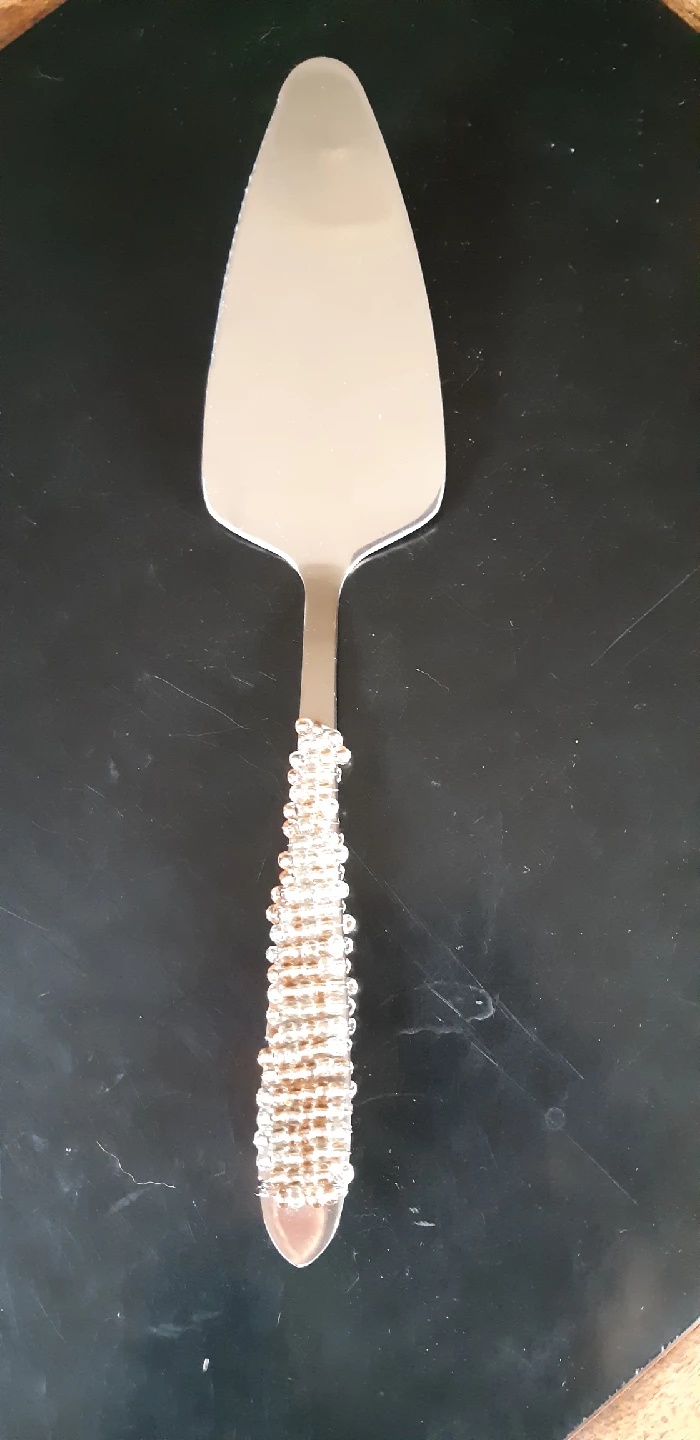 1. A cake cutter/server with a beaded handle