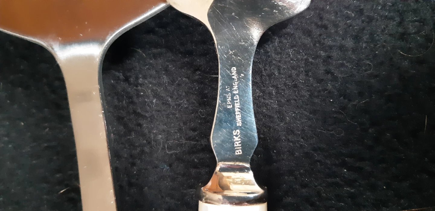 3. A silver plated spoon with a white handle from Birks