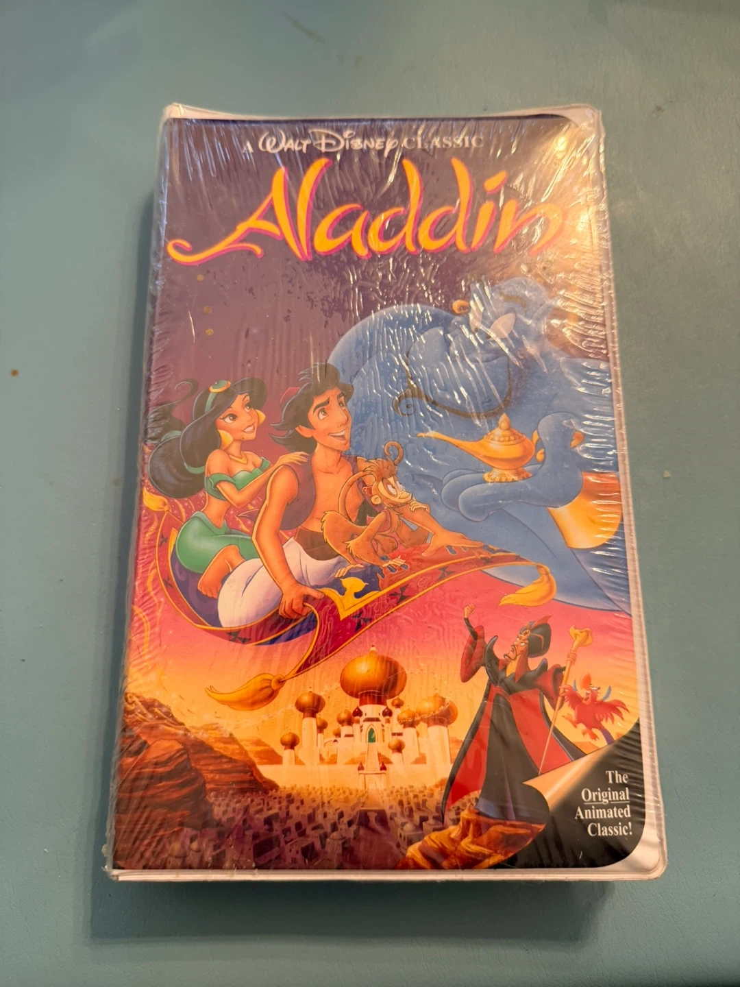 79Selling a sealed copy of Walt Disney's Aladdin on VHS! It's in its original packaging and ready for a collector or anyone who loves this classic film. A great addition to any Disney collection!
