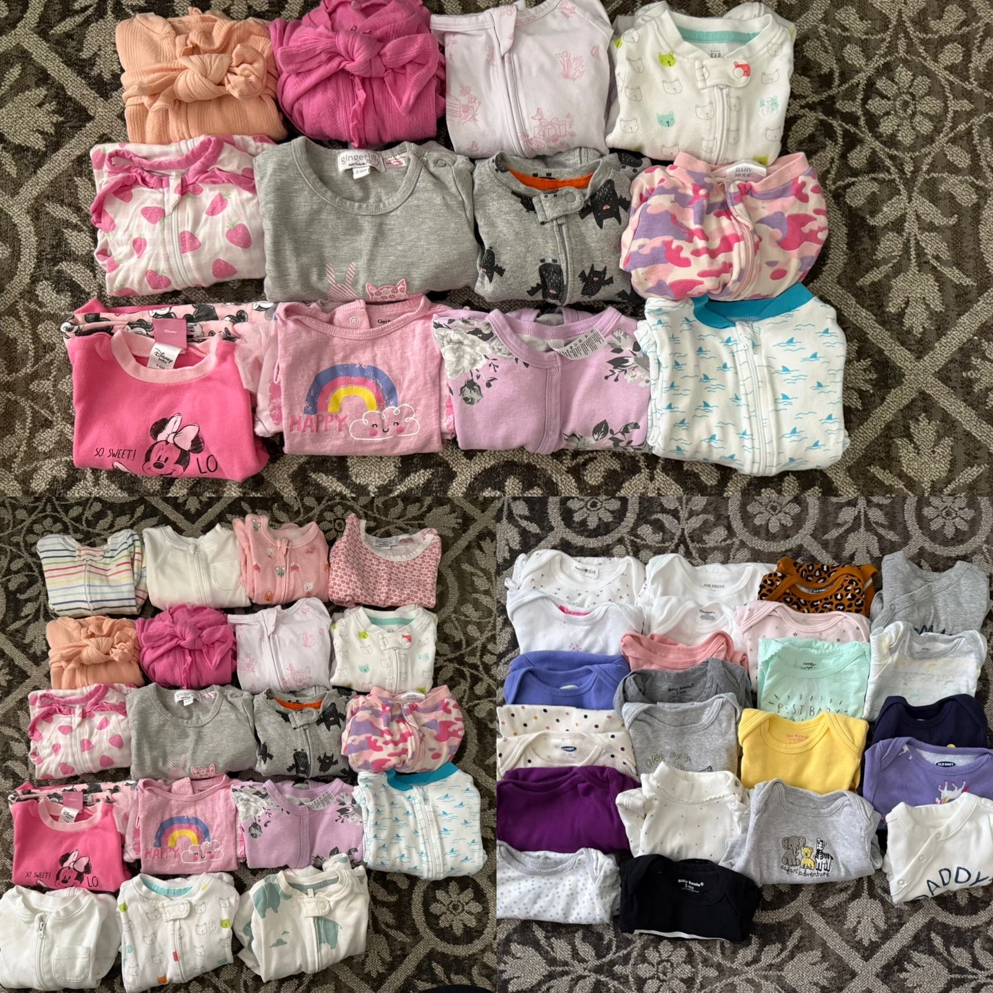 A collection of clean and like new baby girl clothing items almost a complete wardrobe in sizes 3-6 months. Perfect for stocking up on cute outfits for your little girl! There are dresses, leggings, tops, and much much more!!! Ready for a new baby and home.