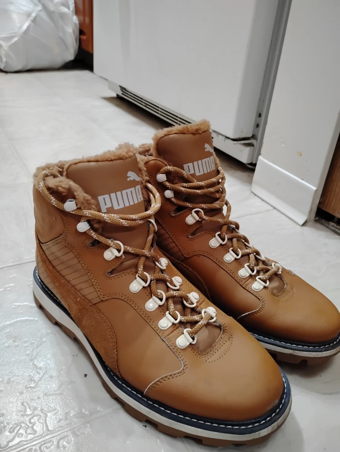 Selling a pair of brown leather Puma winter boots. They have a cozy faux fur lining to keep your feet warm and are in great condition. Perfect for those snowy Canadian winters!