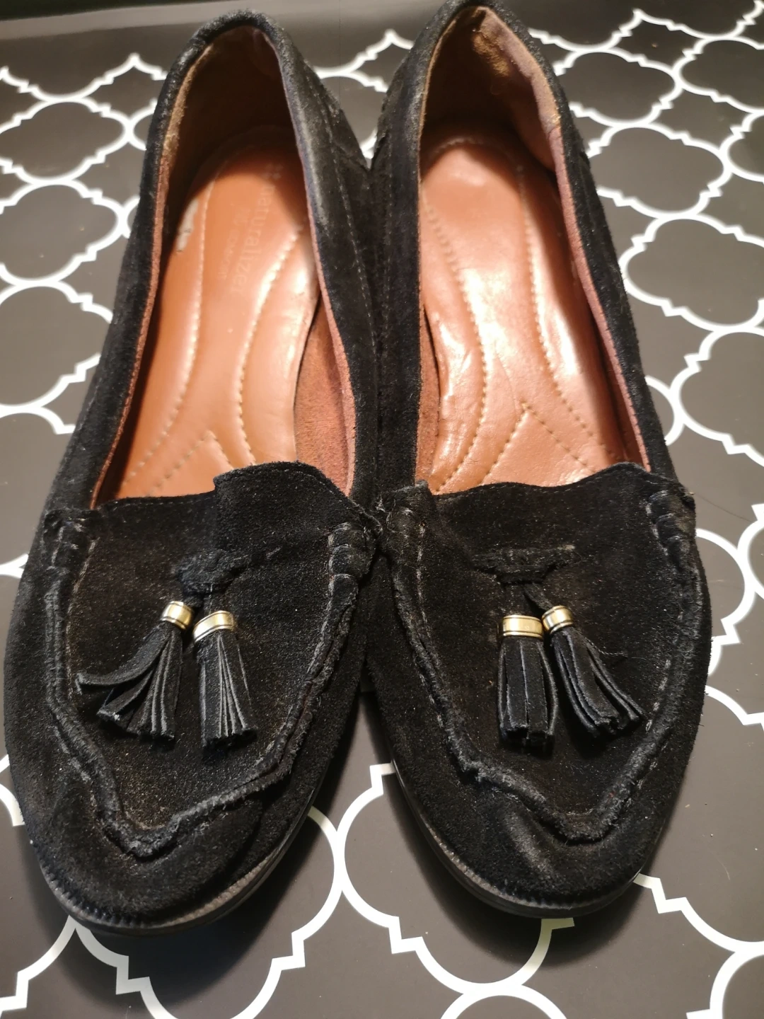 15Selling a pair of Naturalizer loafers in black suede. They're in good condition and feature stylish tassels. Perfect for adding a touch of elegance to your everyday look!