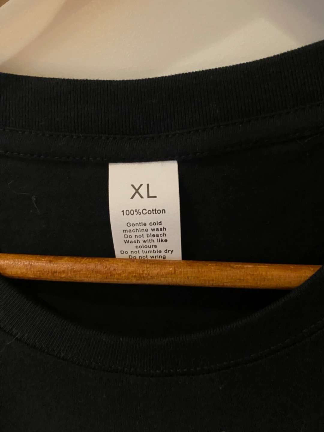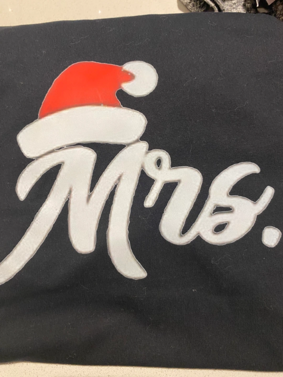 Selling a black Mrs. Christmas T-shirt in XL! It's made of 100% cotton and features a cute Santa hat design. Gentle cold machine wash is recommended, and it's best to wash with like colours and avoid tumble drying or wringing.