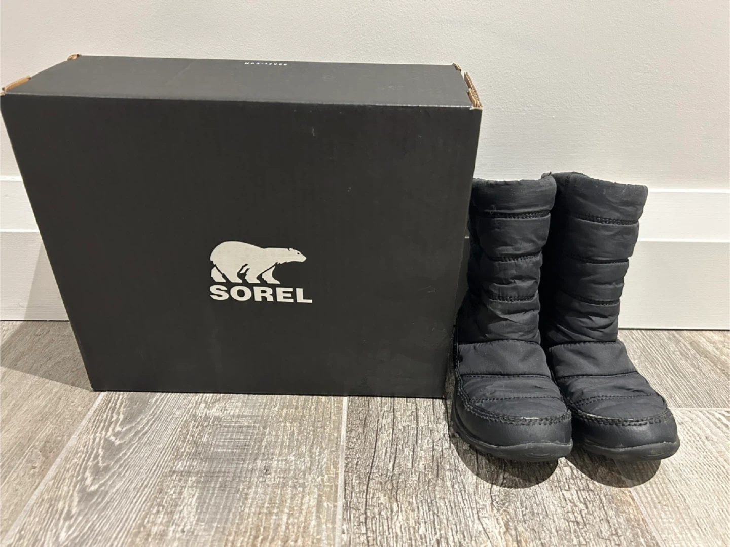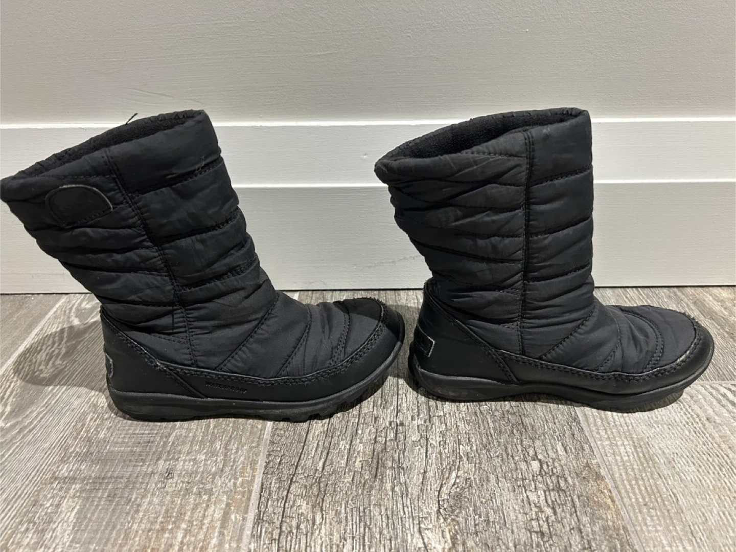 Selling a pair of children’s black Sorel winter boots. They're in good condition and come with the original box! Perfect for keeping your feet warm and dry this winter season. Not bulky and heavy, perfect for little ones. Waterproof and temperature rating of -25F / -32C. Original price $100.