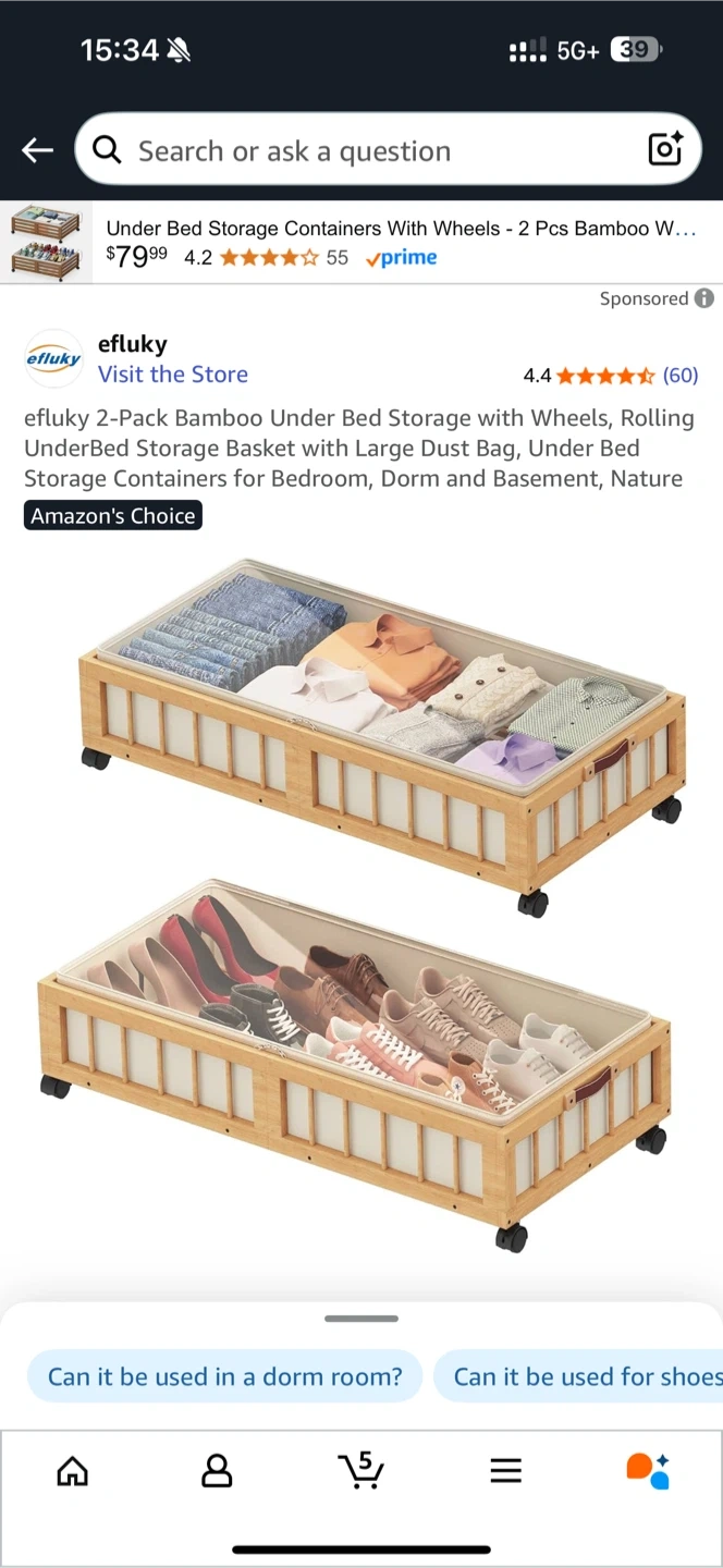 124These under-bed storage containers by efluky are perfect for organizing your clothes, books, blankets, and shoes. They come with wheels for easy moving and a large dust bag to keep your items clean. The dimensions are approximately 30.71" x 15.54" x 7.48", and each container has a capacity of 48L. The box is included!