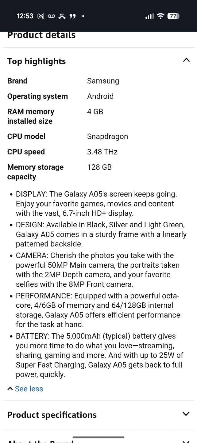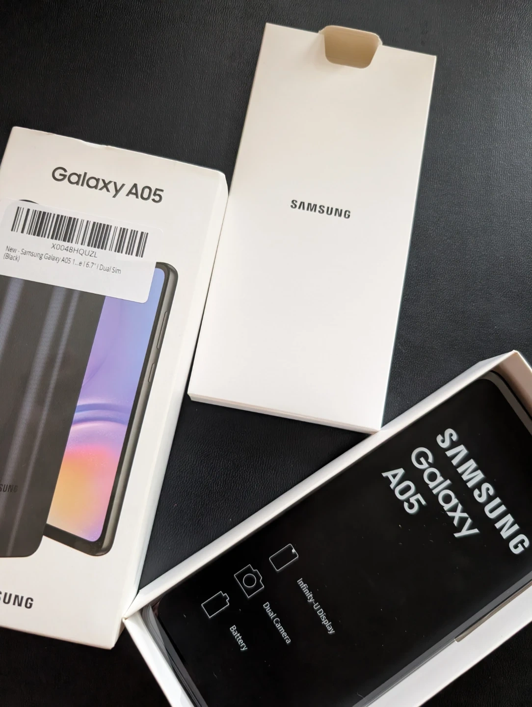 Selling a brand new Samsung Galaxy A05 in black! Comes with the original box and accessories.