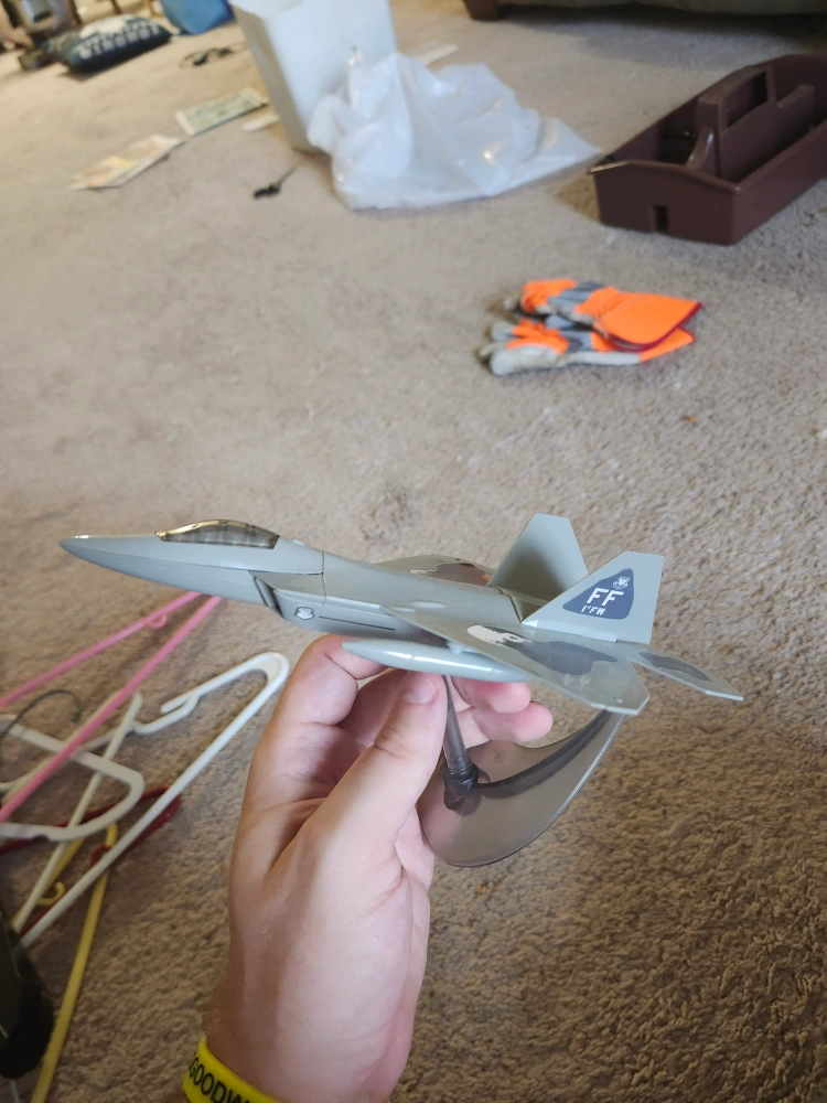 Selling an F-22 Raptor model plane! It's in great shape and comes with a display stand. Perfect for aviation enthusiasts or as a cool desk ornament