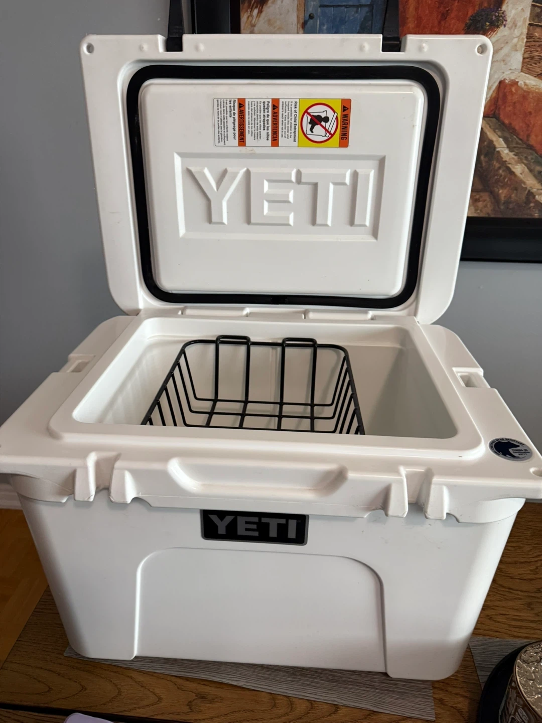 Selling a Yeti cooler that's in great shape! It's white and comes with a handy basket inside. Perfect for keeping your drinks and snacks cold on those hot summer days