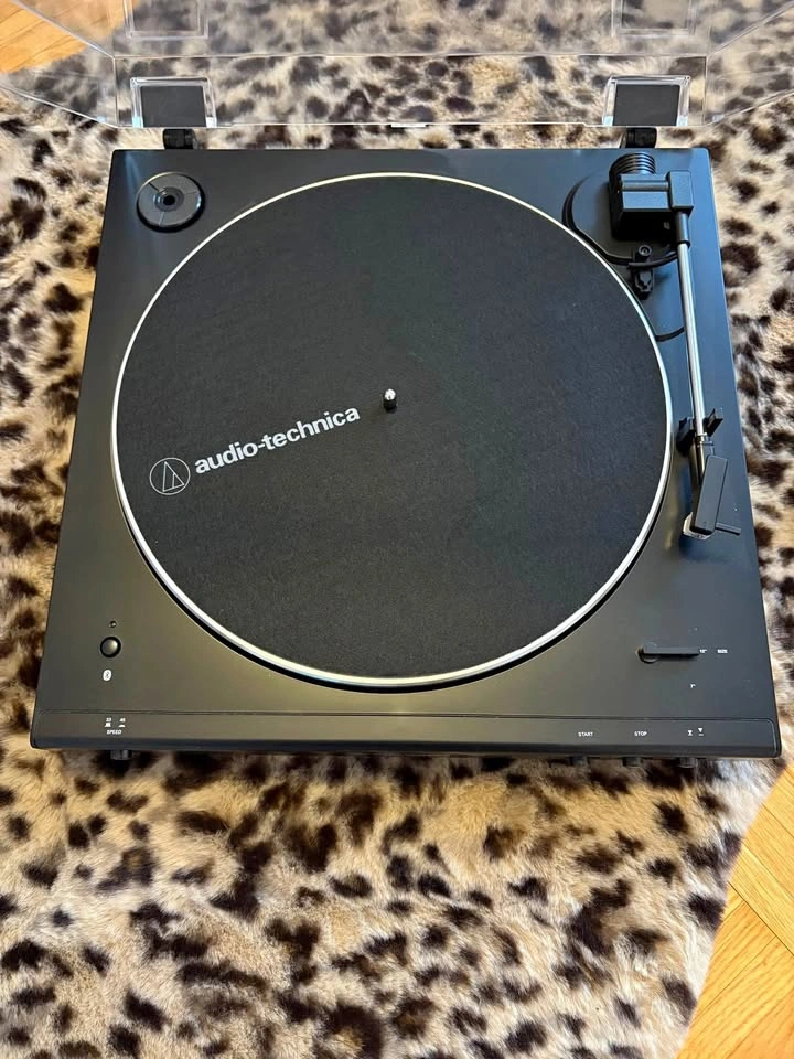 Audio-Technica AT-LP60XBT record player gently used by me. Top plastic cover has very light marks from casual use. Other than that everything else is in perfect condition.